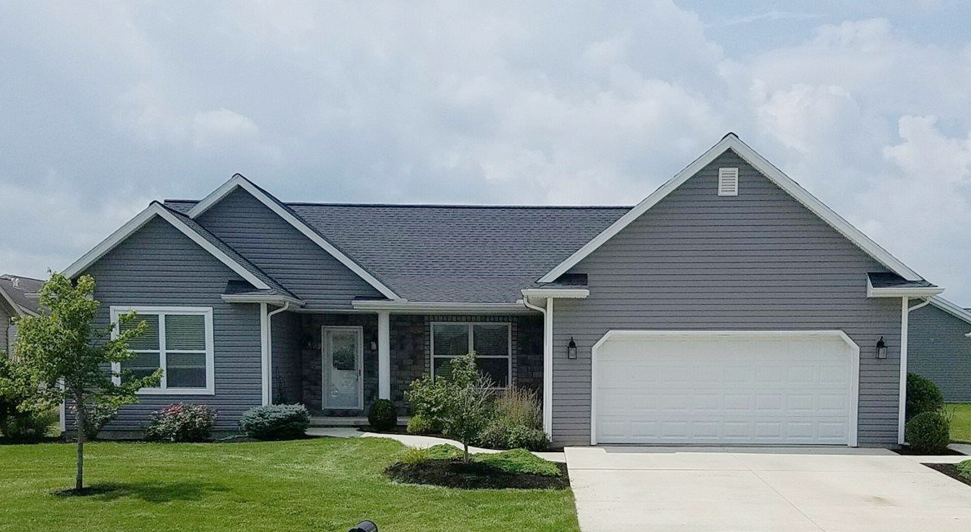 update exterior home scene with nice front yard and landscaping add trees behind home