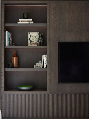 show this furniture in full front view with tv and keept the realisim and textures soft realistic light
