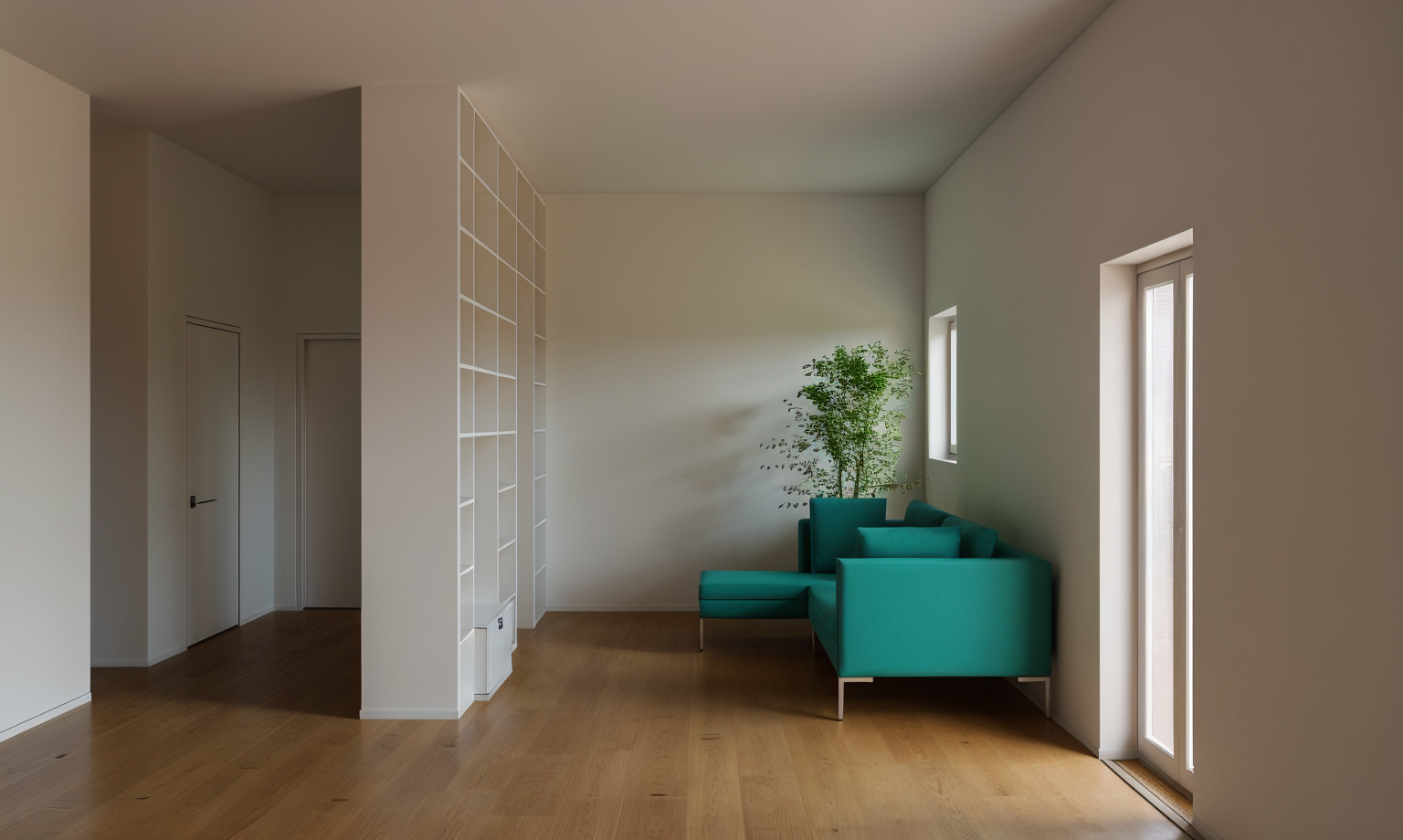 interior shot organic modern interior with warm lighting and art deco details plaster walls architecture