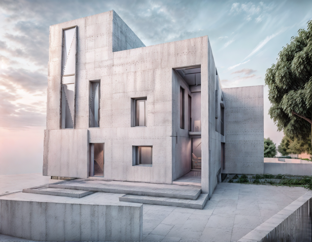 create a detailed architectural rendering of a modern single story house layout include a spacious open floor plan with natural light pouring in through large windows use soft earth tones for the walls such as warm beige and light taupe complemented by dark oak wood flooring the kitchen features sleek white cabinetry and a marble island with chrome fixtures the living area is cozy with a plush gray sofa and a glass coffee table add green plants for a touch of nature illuminate the space with a gentle warm ambiance through recessed lighting the environment has a calming and welcoming atmosphere