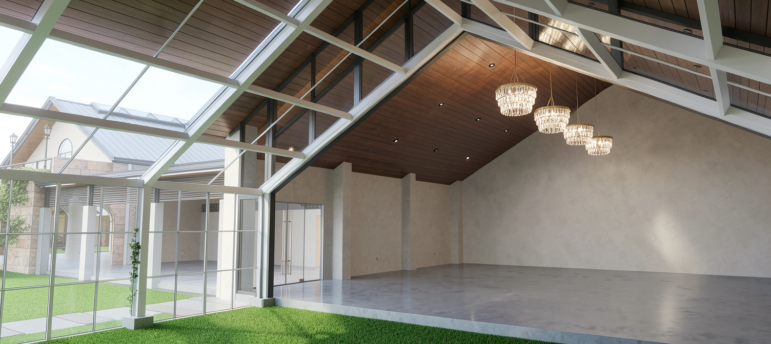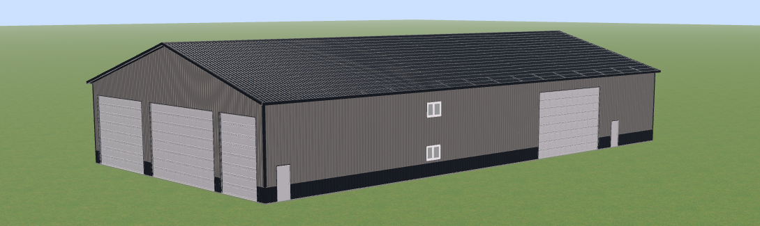 make look like a new building in a mowed lawn and concrete driveway