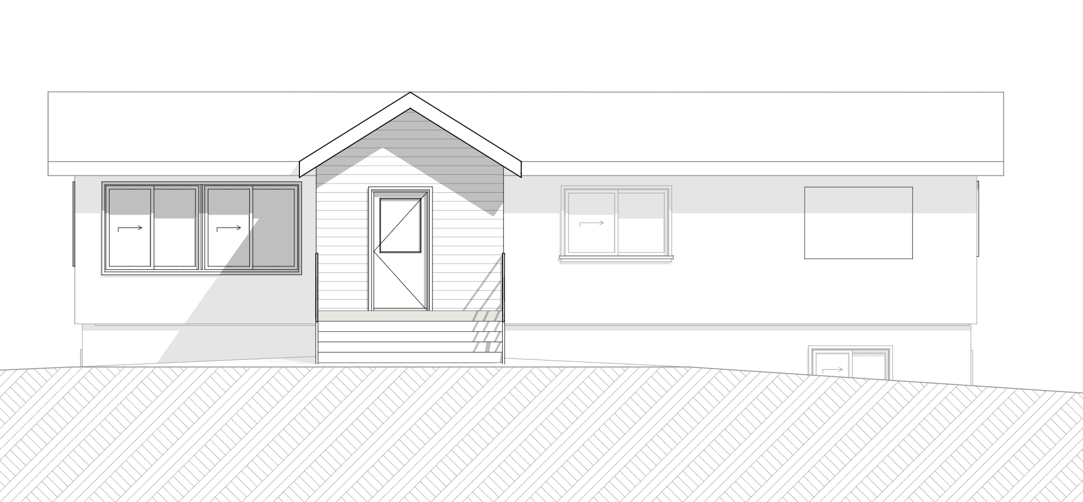 show the bulk of the house using shosugi ban siding with a random ashlar stone around the entry and at the base of the house