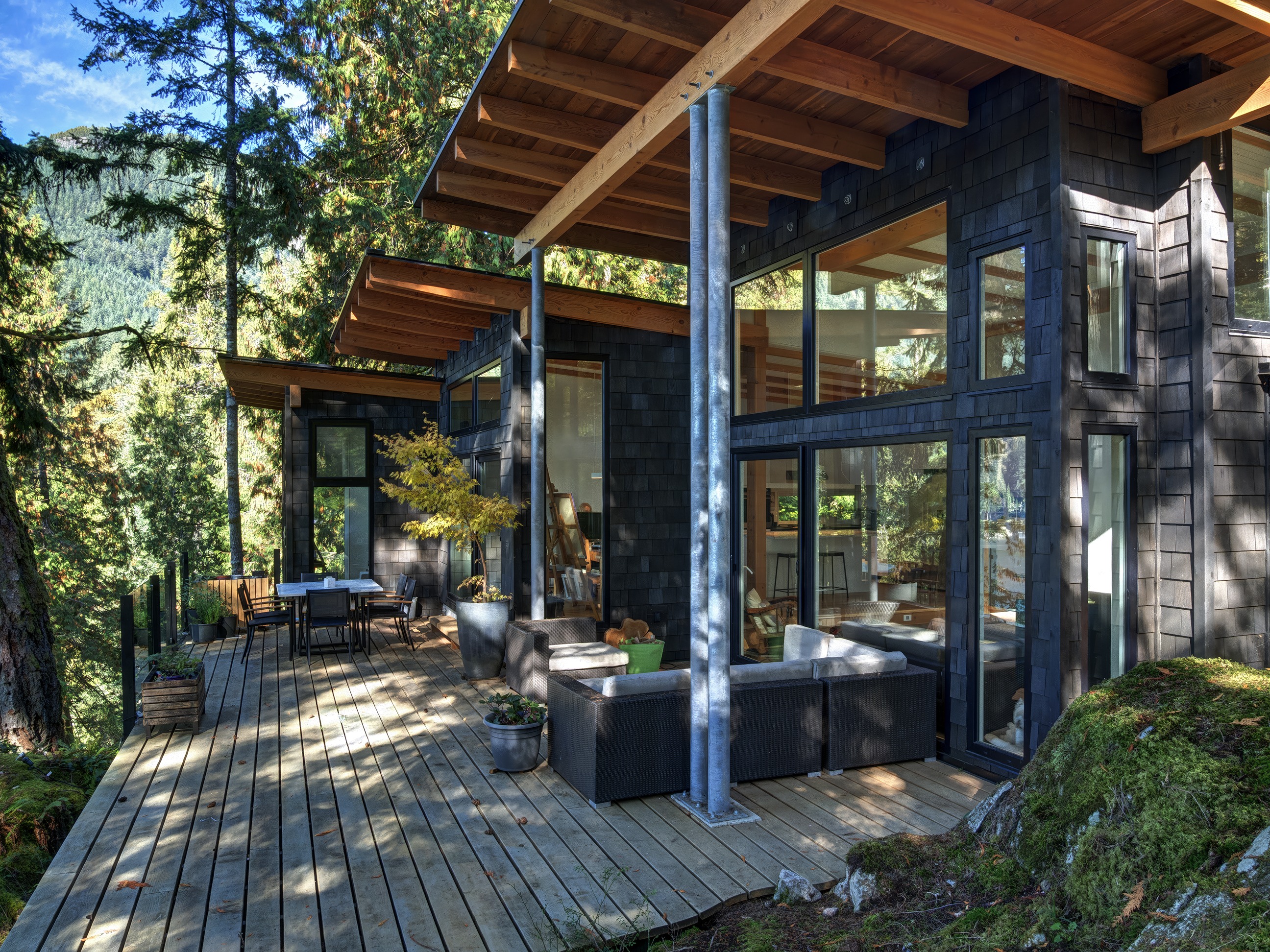 make look like it was created by a professional architectural photographer maintain blue sky