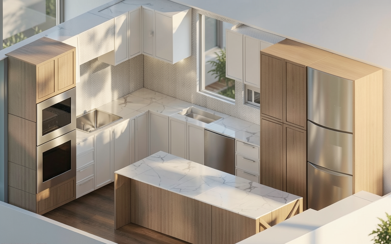 make the wood tones of the cabinets slightly warmer toned