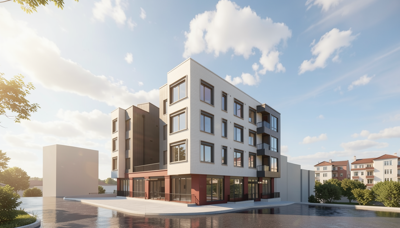 exterior shot change this floor plan in a 3d model