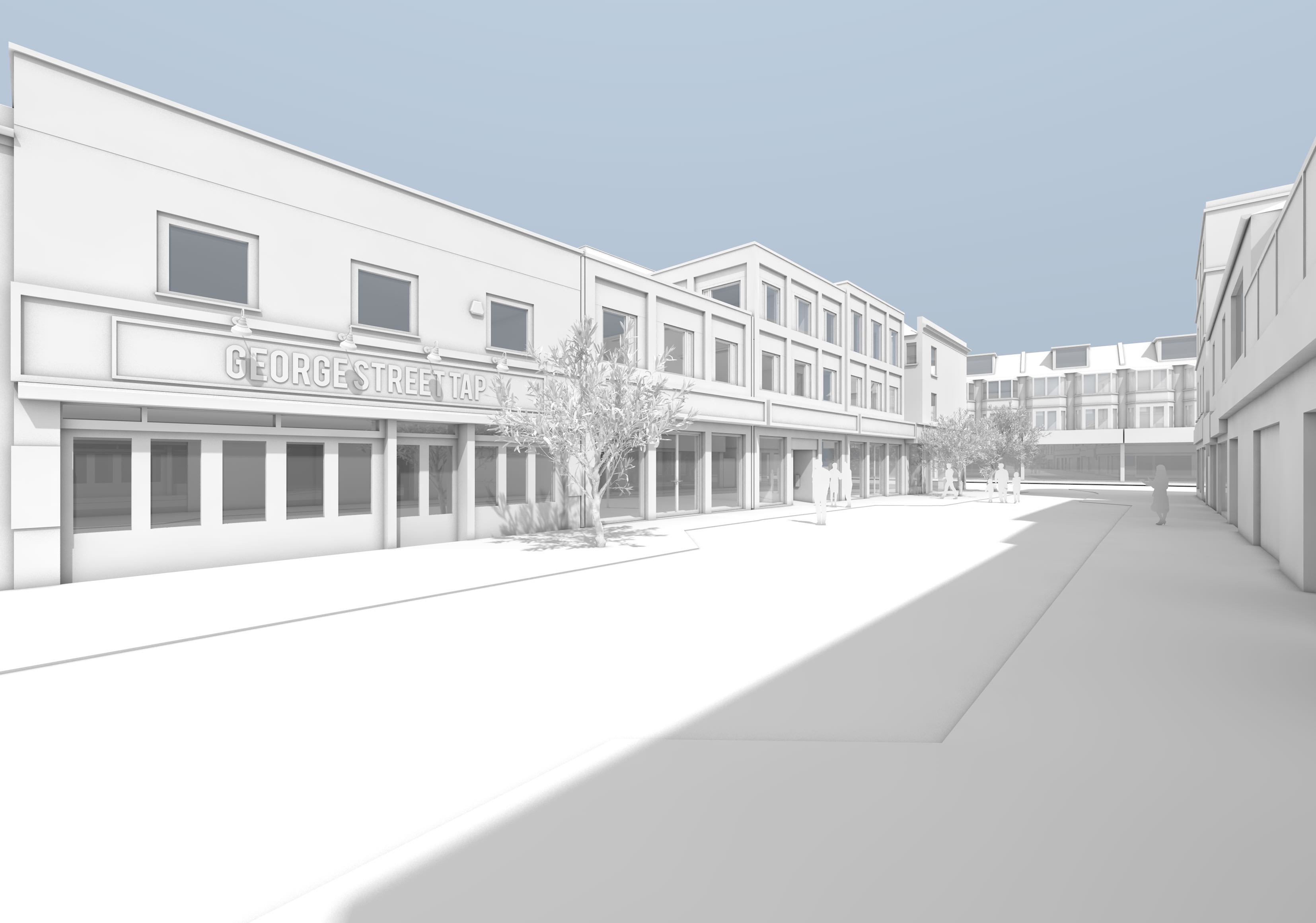 make this a photorealistic view of the new residential building with commercial ground floor at the 1 3 george street in hove uk the new building is made of 3 tones of brick in buff white tones