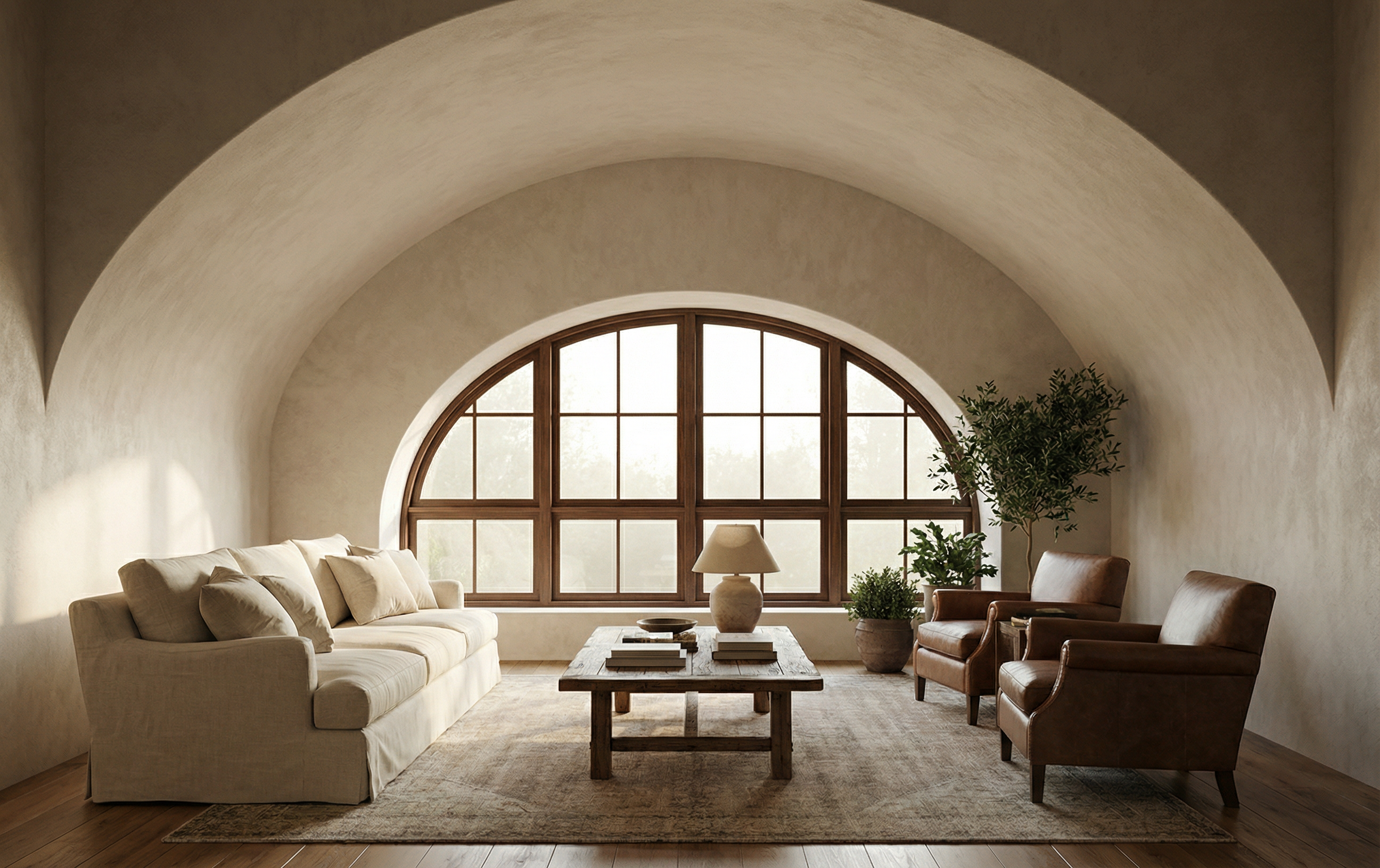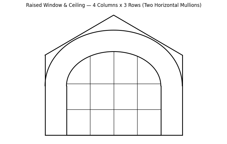 i would like a room with this elliptical window shown on the rear wall i would like the walls to slope up into an elliptical ceiling just like the line drawing above the depth of the room is not shown but for scale the depth is 24 and the width of the room shown in the picture above is 16 the room is a rectangular shape 16x24 the ellipse extends all the way across the room
