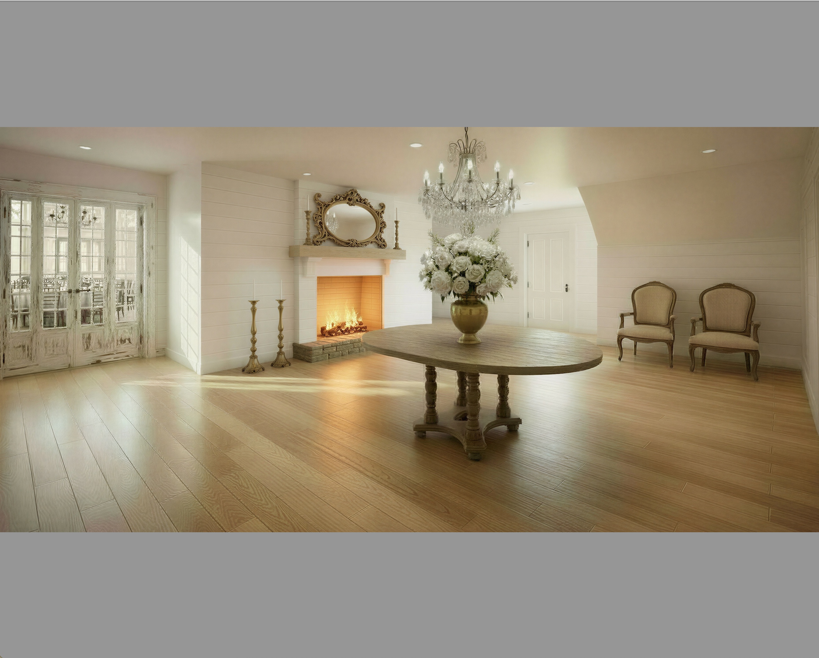 go back to the original image then hange the view on the other side of the french doors to a wedding reception hall with white tables and wooden chairs do not put anything else in this foyer