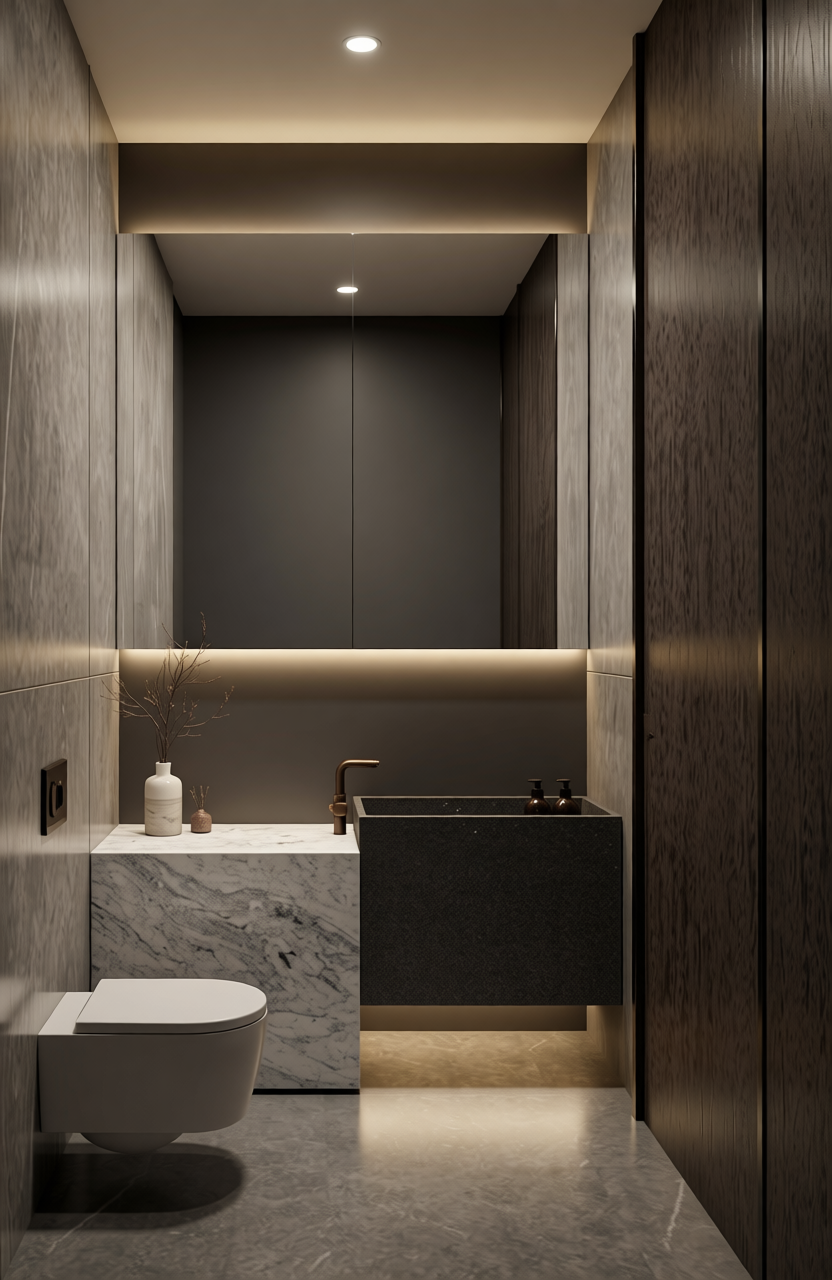 modern minimalist architecture facades single story rectangular house olive green facade with dark gray 45 degrees wood planks large glass windows sleek metal slats set in a serene suburban environment soft natural lighting some greenery in the surroundings a couple scots pines calm and tranquil atmosphere cloudy blue sky backdrop with light clouds warm and inviting tones