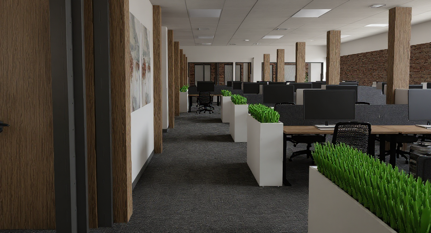 enhance this interior 3d rendering with some better lighting and make the existing materials feel more realistic keep the details the same