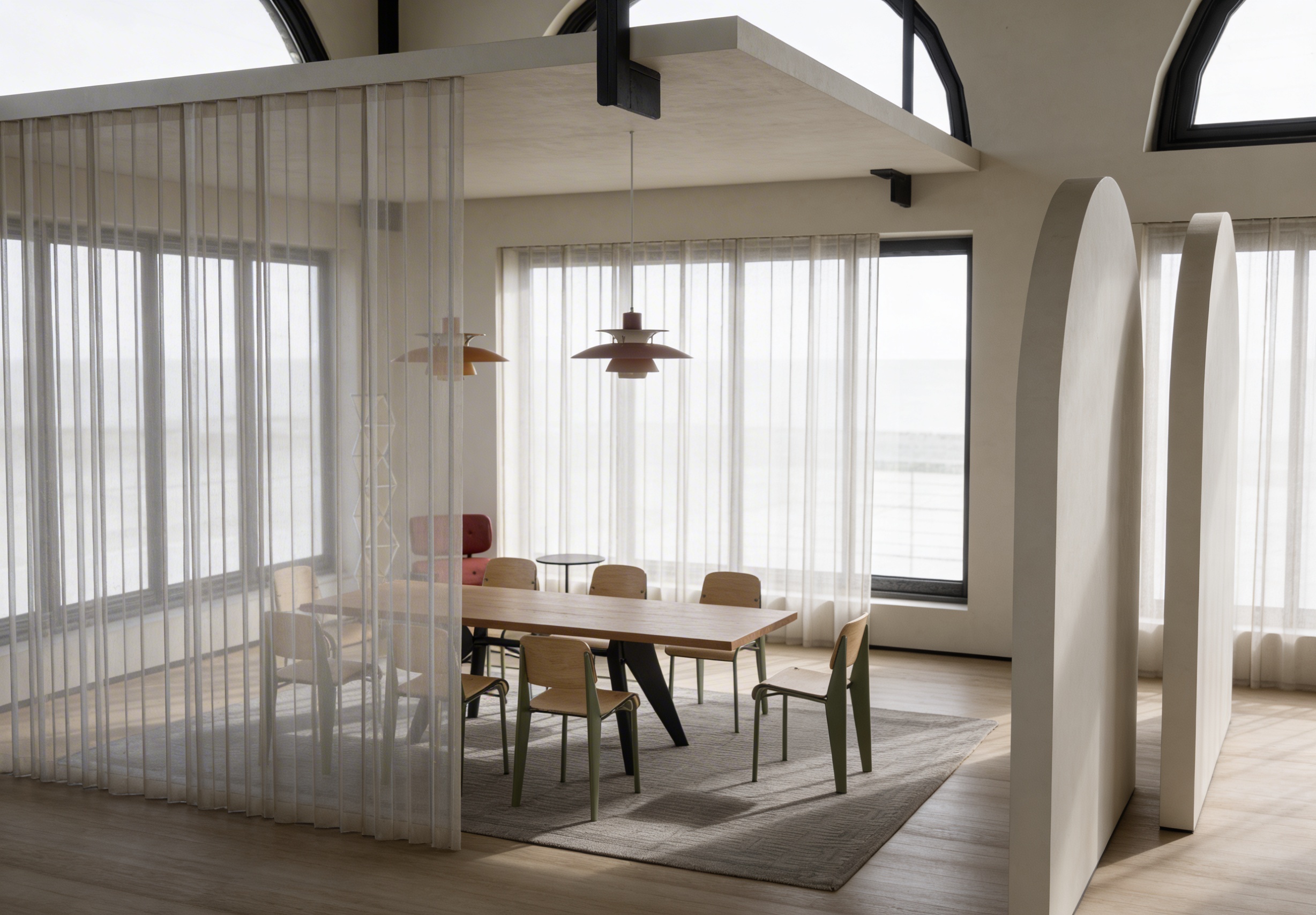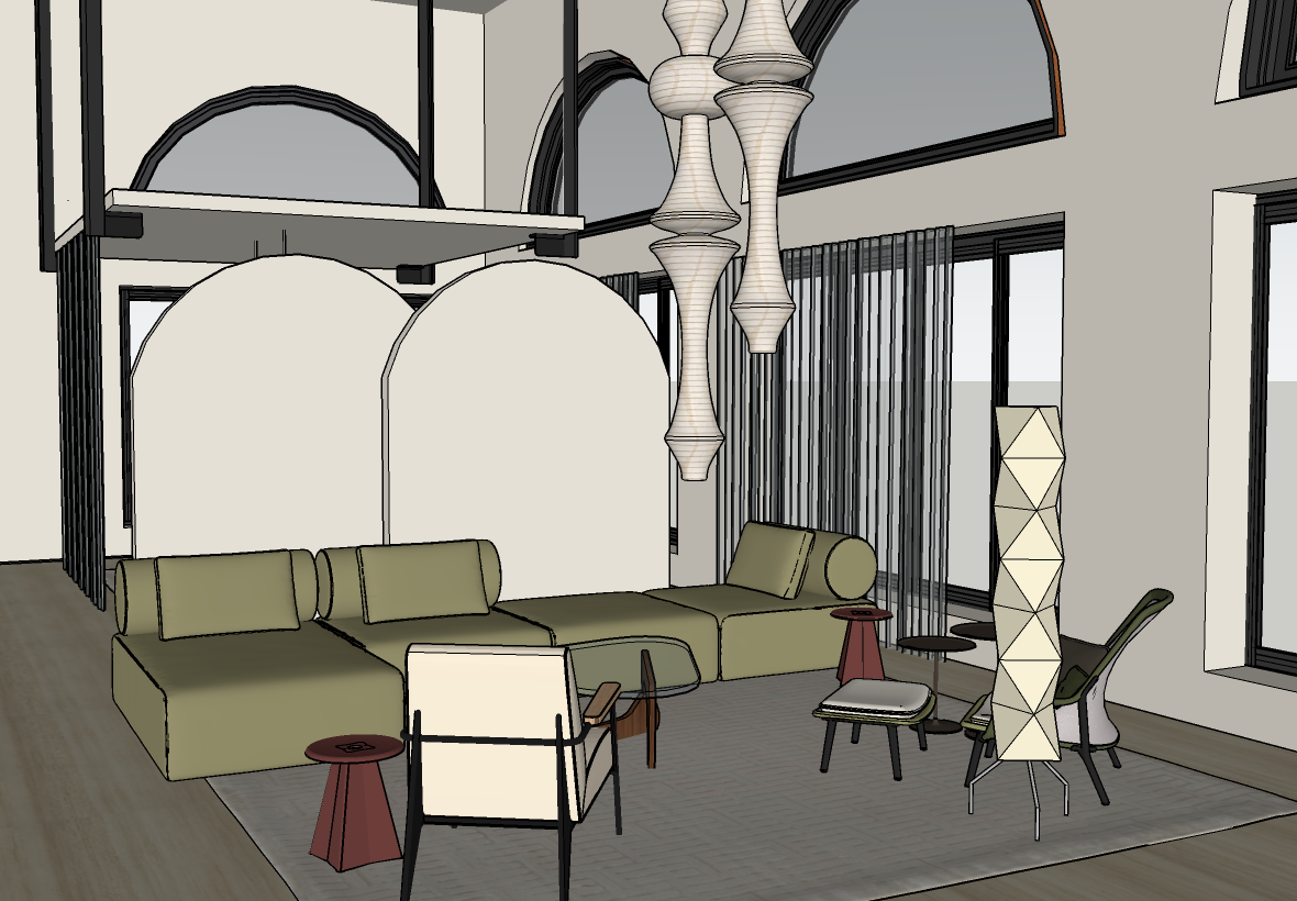 render realistically do not change anything add blurred greenery landscape outside the windows