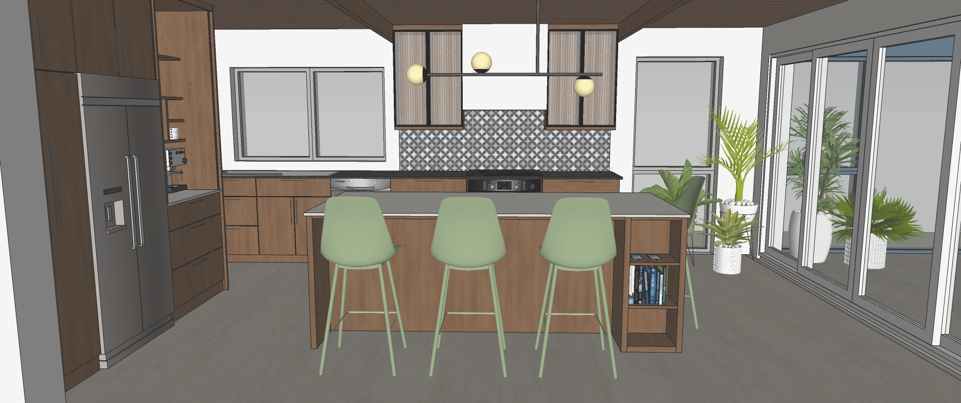 make this drawing as close to a photo as possible and add a seaside landscape behind the windows