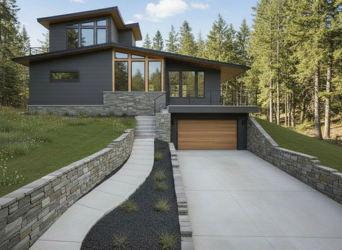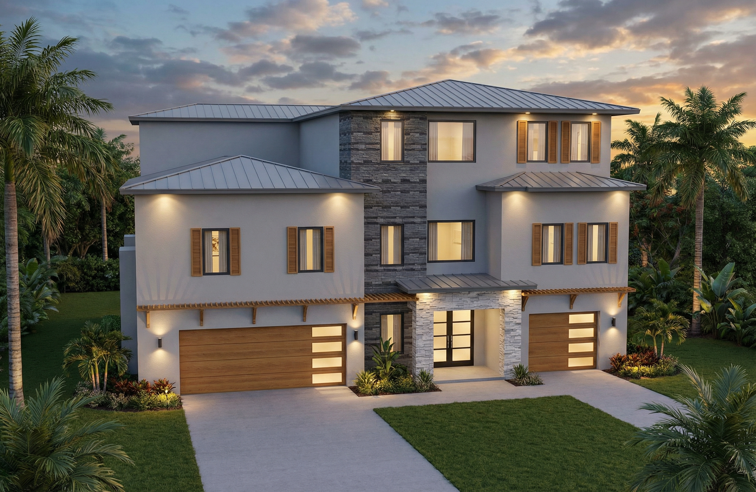 keep the building geometry the same do not change the camera view or angle show dark exterior paint sherwin williams tricorn black on the body of the building show trim and columns alabaster by sherwin williams railings color tricorn black by sherwin williams