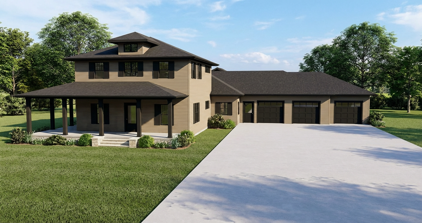 add circle driveway in front of house add greenery