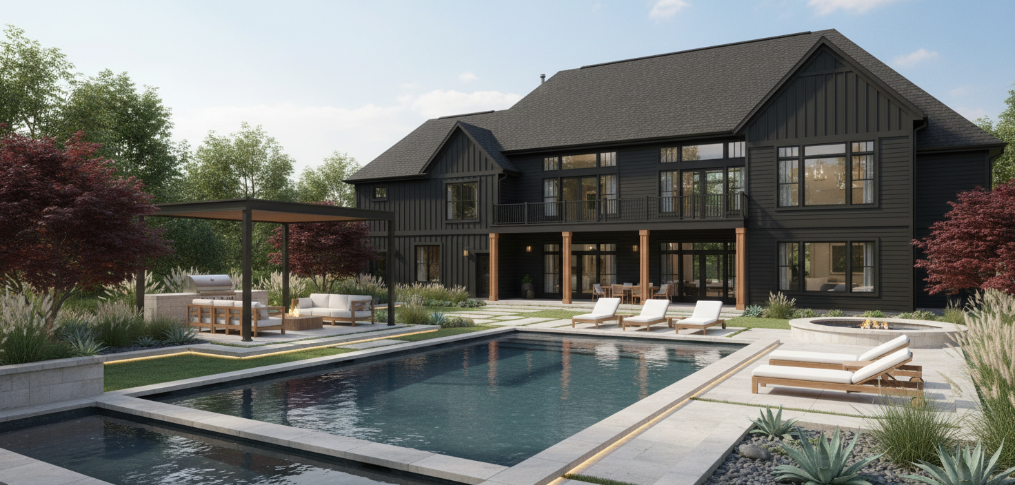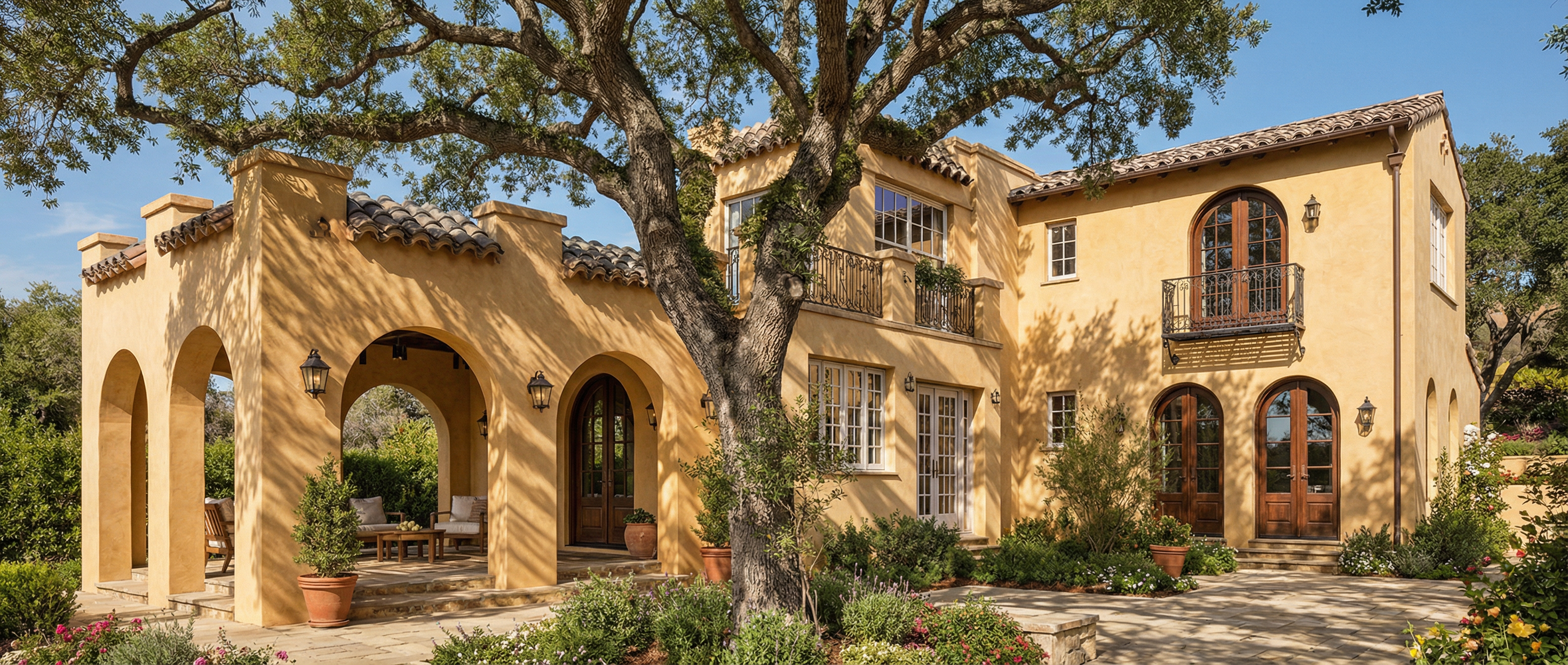 render this kitchen with dark blue base cabinets medium walnut upper cabinets tall cabinet next to frige top and bottom cabinet doors to be medium walnut cabinet above fridge to be medium walnut brass cabinet handles brass sink faucet quartz countertop with slight grey vein quartz backsplash with light grey vein quartz backsplash behind the sink to extend to underside of cabinet apliances to be ge caf model in matte white appliance handles and knobs to be brass flooring to light oak walls to be painted flat white base molding to be painted glossy white entry door to the right to be a flush panel door painted glossy white