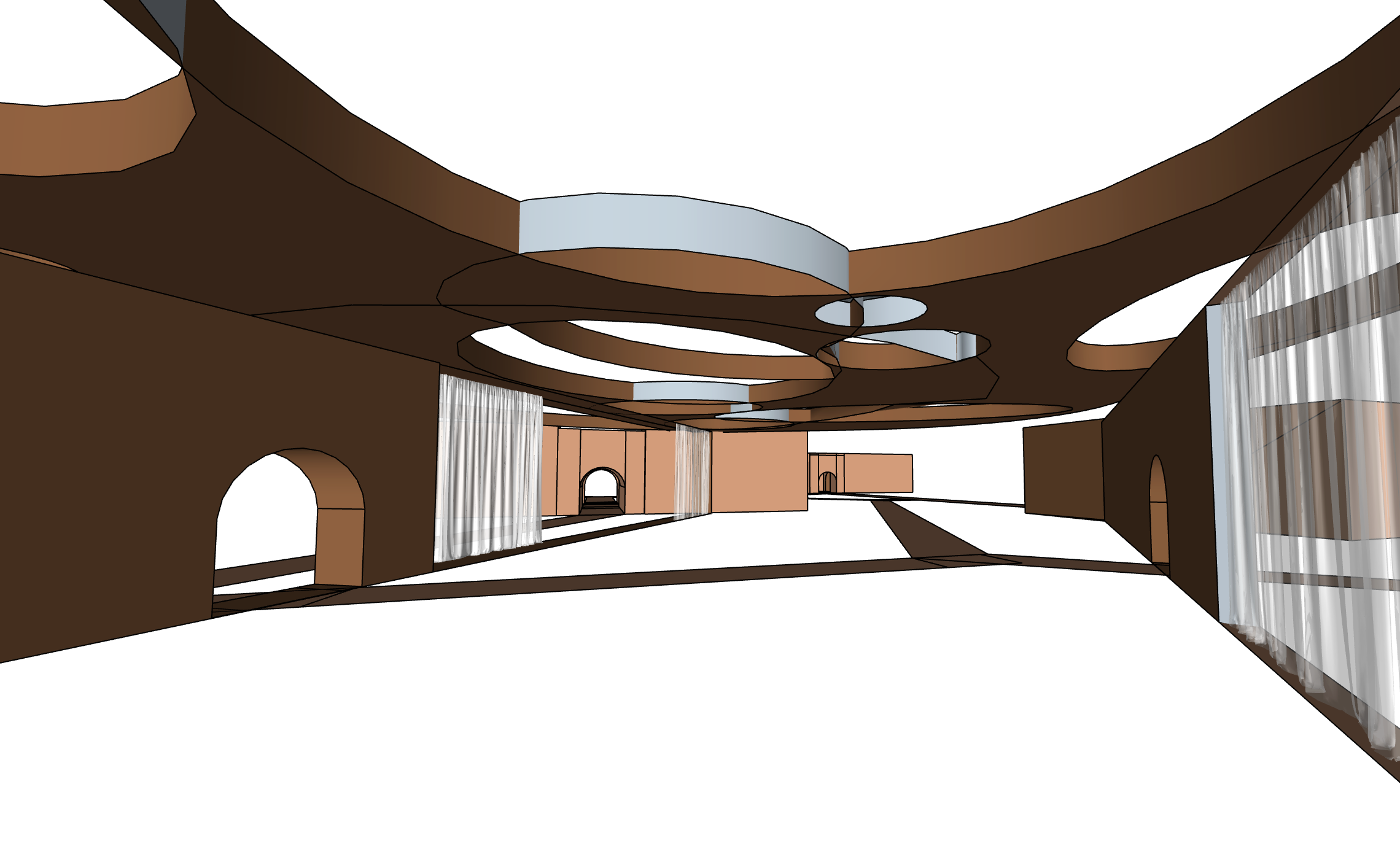 sustainable design exterior shot view of a roof from corten steel and wooden pathways on the ground gravel curtains and walls and cabins from mix wood and corten make it 1000 accurate to the sketch dont change nothing no backround architecture