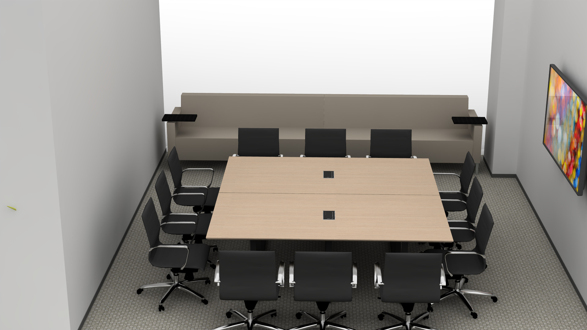 add artwork on walls add laptops on table remove the pieces on artwork next to the tv keep all furniture the same color