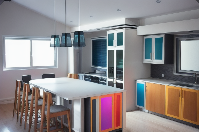 turn this into a real life coffee shop the circular elements are toy displays the wall with the door are windows make the outside georgetown dc on a busy sunny day the floors are wood make the side wall a light blue and white checker make the center element of the displays red yellow blue pink and green put toys on the smaller cylinders too add toys to the cylinder displays and add white shiplap to the entry above the door keep everything else