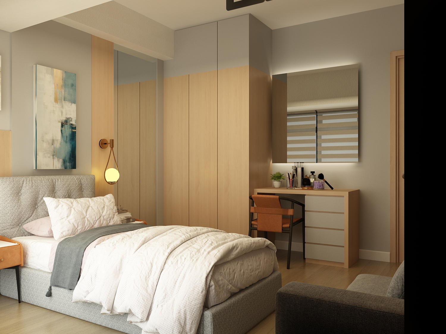 retain blinds at window reflection brighten image a little add light drama add black handle for closet