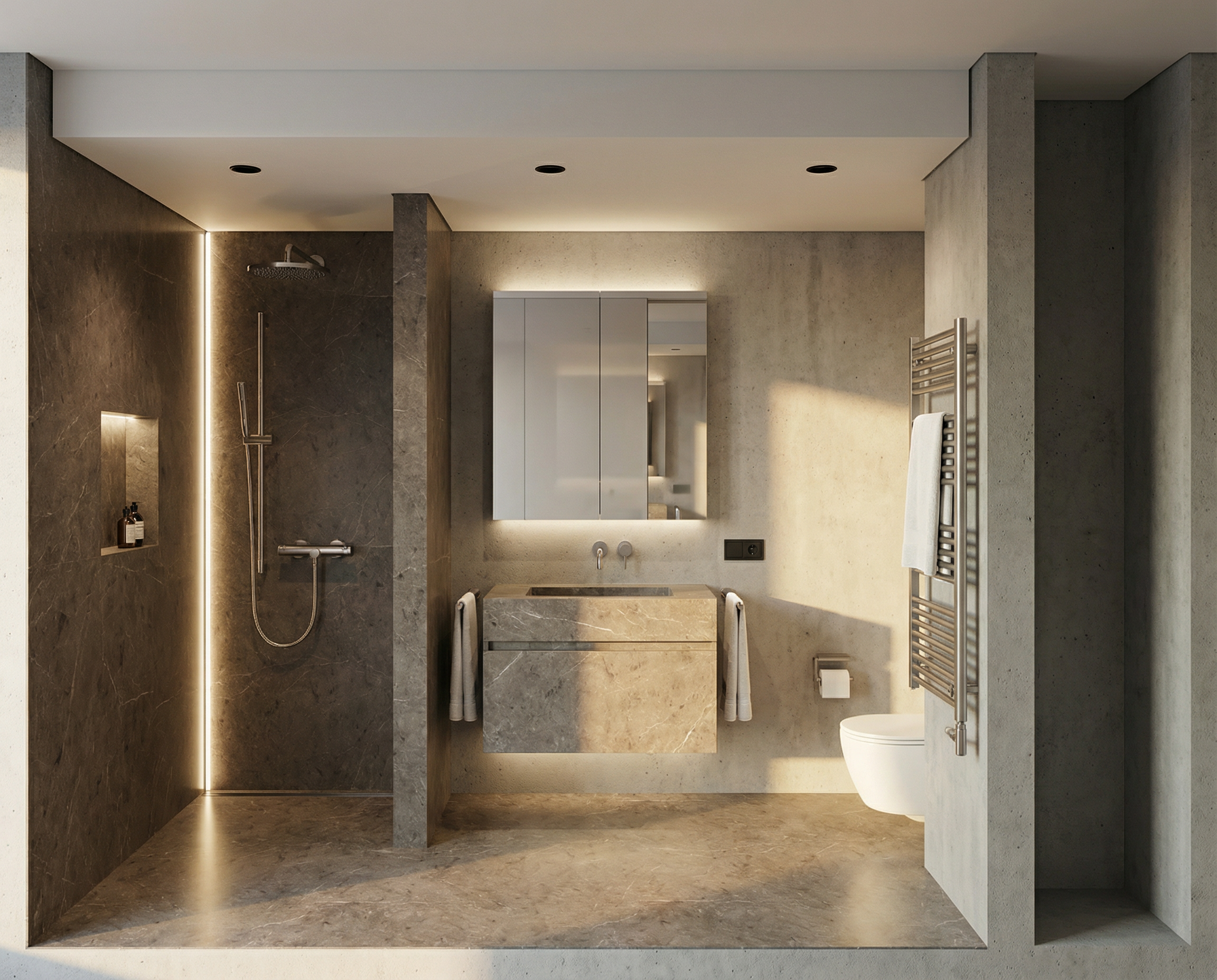 create a realistic rendering depicting this image adobe style modern organic landscaped with drought reresistant landscaping show the roof tile as more realistic
