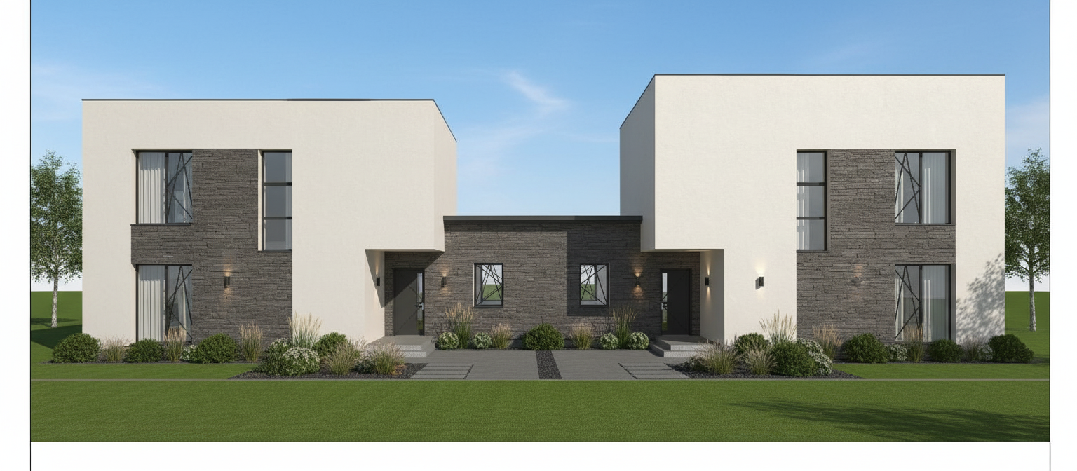 minimalism exterior shot an anthracite painted facade with vertically white clinker in the middle architecture