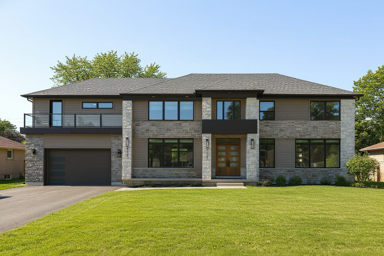 replace driveway by concrete only put more sun to the elevetion dont change the original geomrty add more direct sun dont show the sun rotate sun to other side from the front to the building direct the sun from the front picture to the house sun at front and shade 45 degres down to the back of the house fsu from the front please
