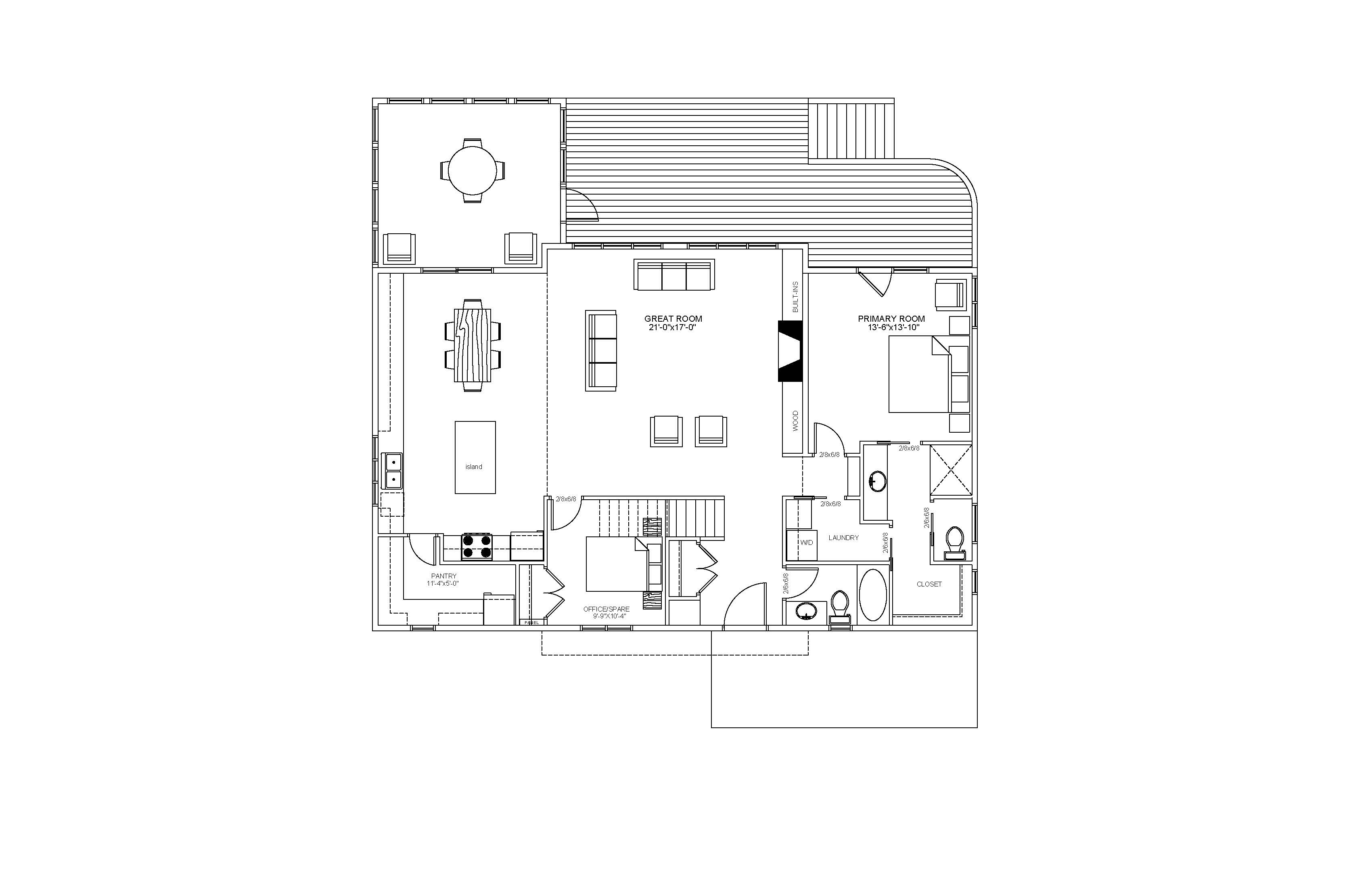 convert this floor plan into a realistic isometric 3d view of a full house show the space from an elevated angle with furniture walls and details visible leave the floor plan as it is contemporary design use the same furniture as shows on the plan do not change the orientation of the floorplan