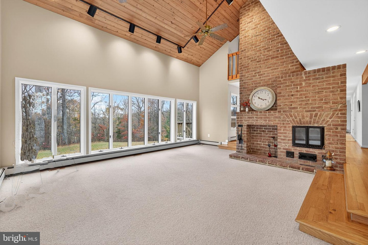add craftman style wood furniture for a warm cozy feel add circular area rug add elk and deer heads at the upper wall low mood lighting add fire in firebox right side add fire wood under clock left side of fire place