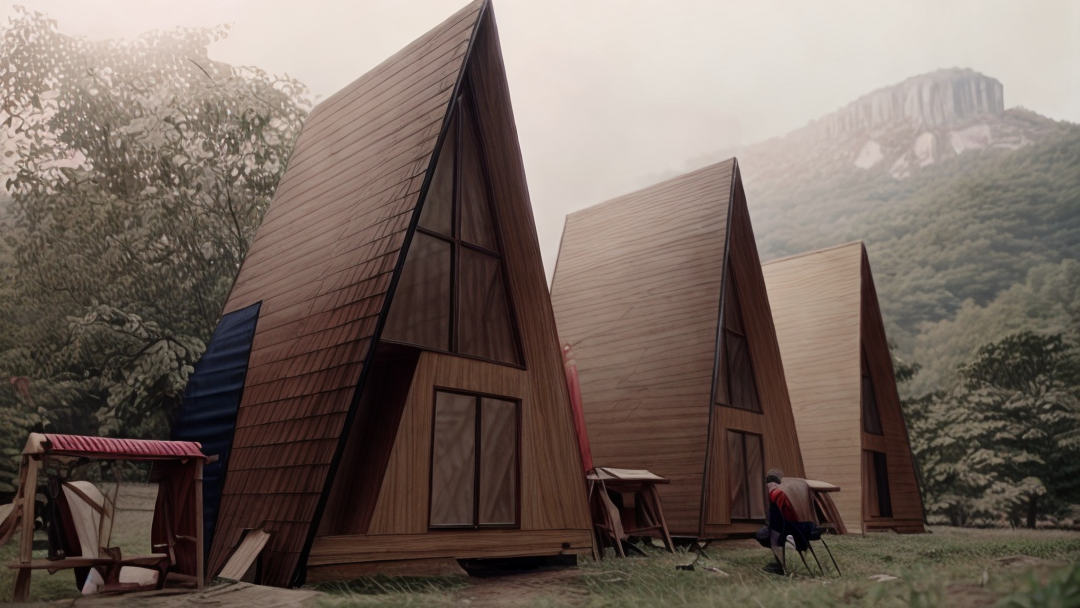 rooftop sky garden in the crown of the building with bold structured organic elements flying exotic birds