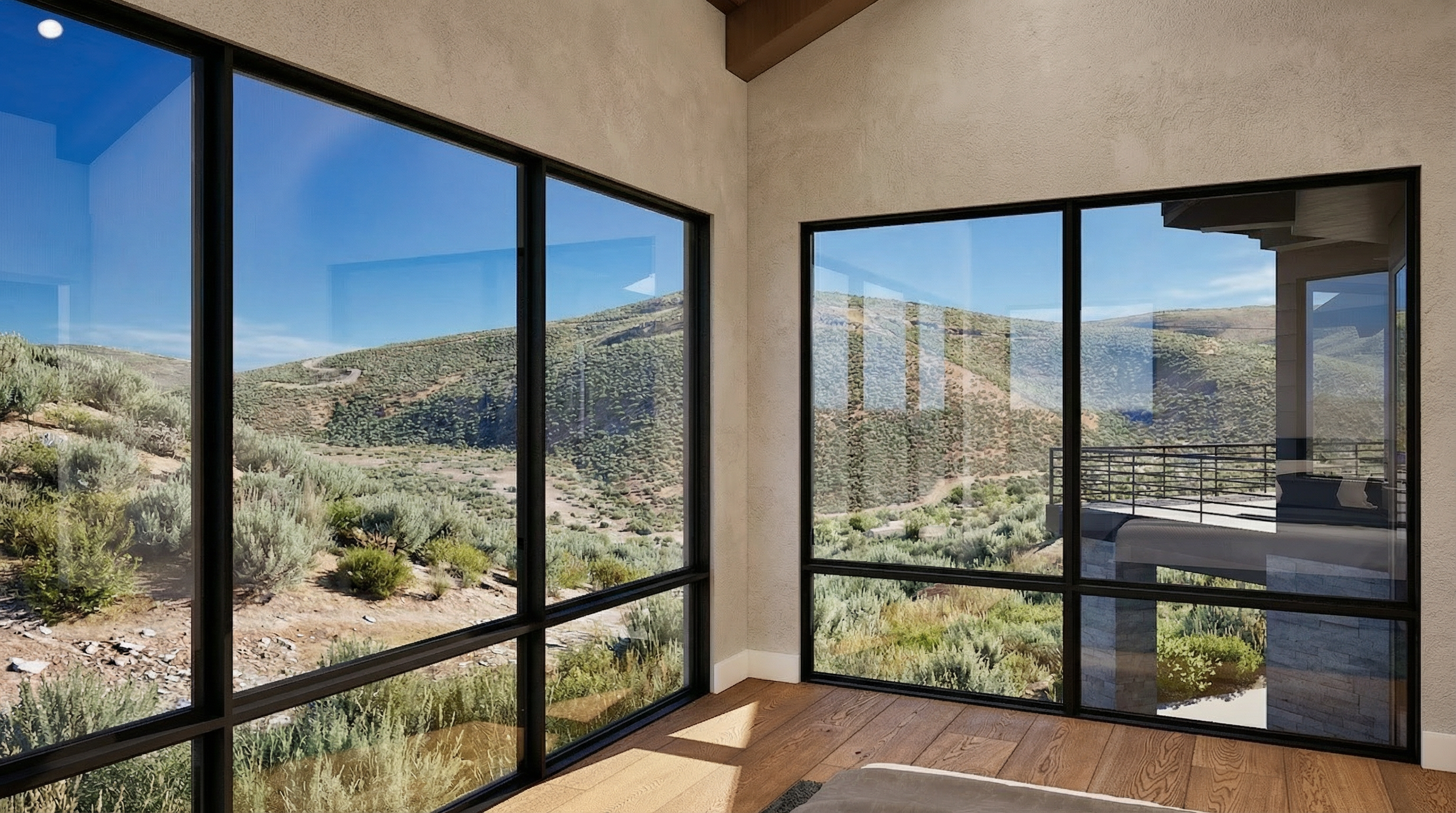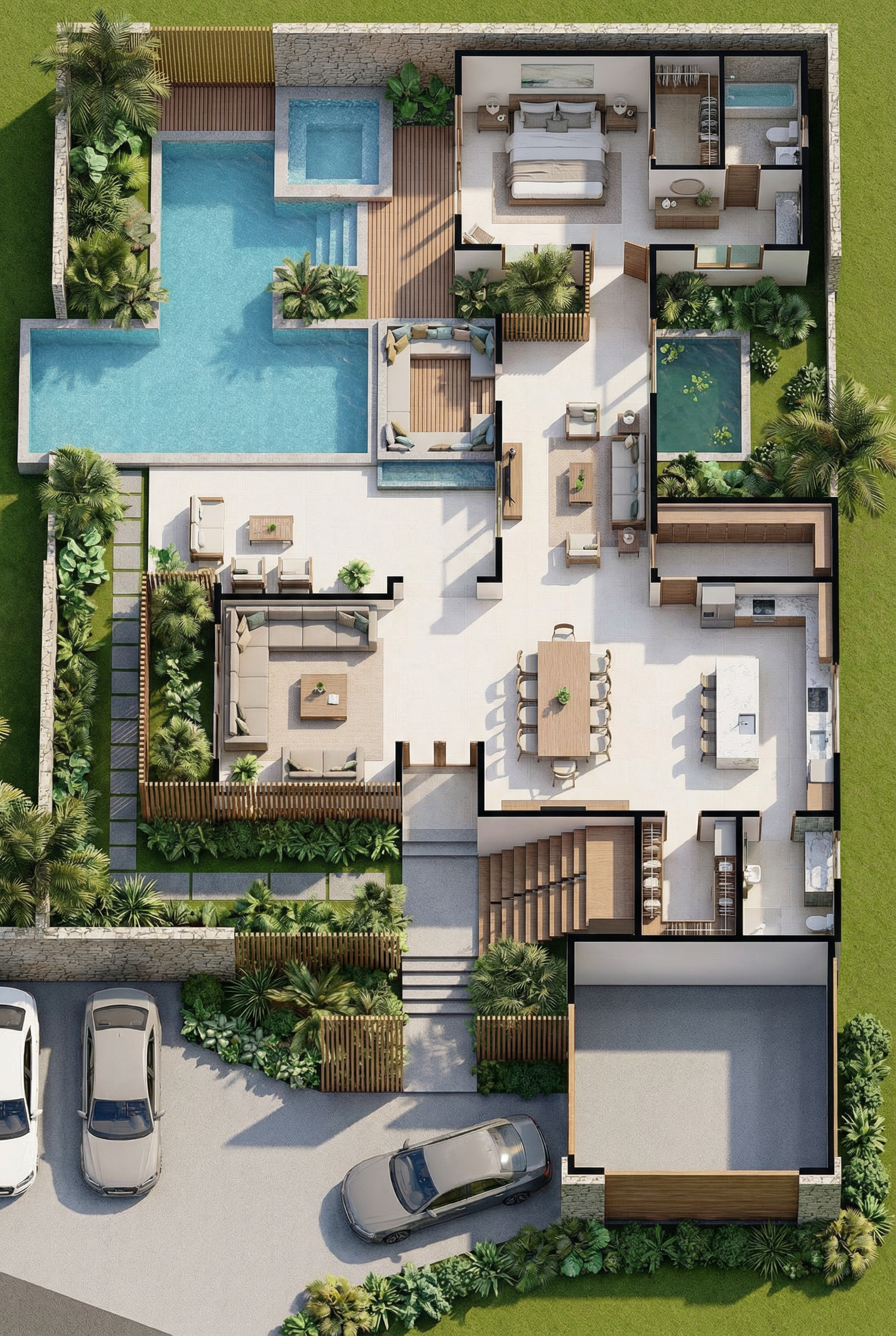 imagine ultra realistic architectural interior rendering of a two story accessory dwelling unit adu bedroom interior view minimalist tropical modern architecture inward facing private sleeping space carved from a monolithic concrete or plaster mass thick walls with deep window reveals restrained openings including a narrow horizontal slot window and a recessed vertical window facing a concealed garden or interior void low light interior atmosphere emphasizing enclosure and silence soft indirect daylight filtering through openings minimal artificial lighting calm and introspective mood smooth but imperfect plaster or concrete textures simple flush doors no decoration no furniture emphasis strong shadow depth quiet material palette professional architectural visualization eye level interior perspective raw realism ar 4 3 style raw