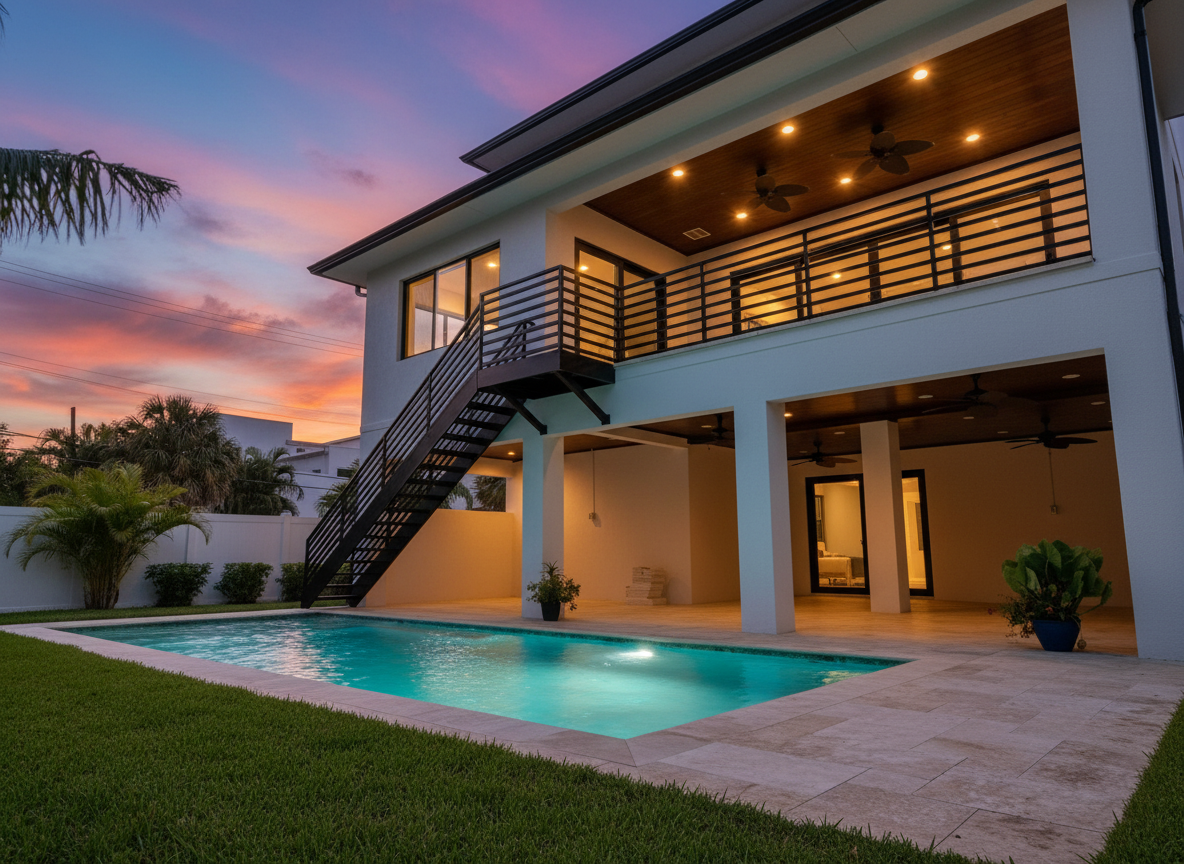 exterior shot create twilight visualization scene for this photo do not change anything else in the photo architecture