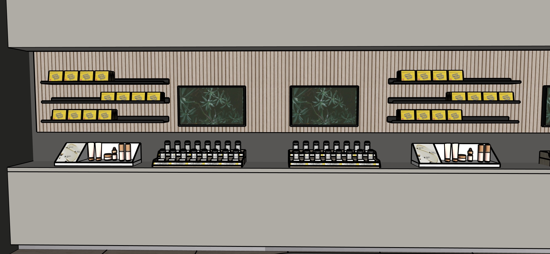 add lighting under each shelf and render to be more realistic do not alter the merchandise or product displays in the photo