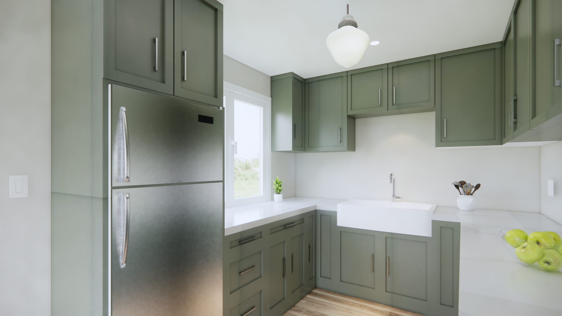 remove the can light and make the school light clear glass all hardware is brushed nickel handles