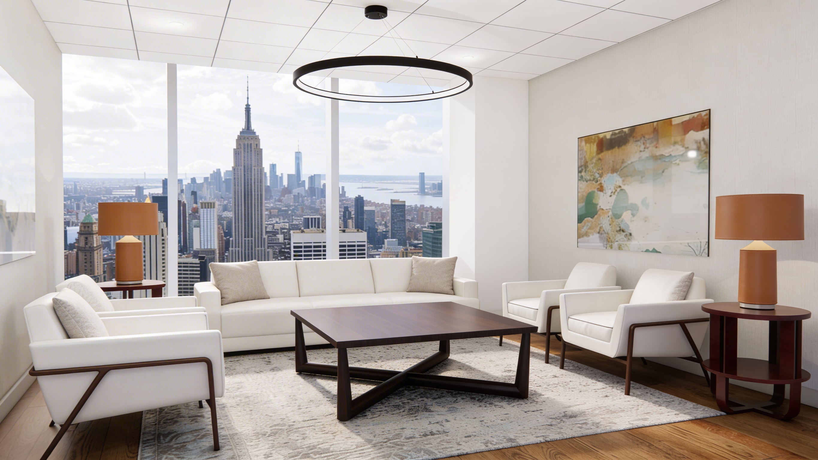 create a photorealistic rendering keep all the elements proportions and finishes as they are change the color of the two table lamp bases to a light brown and leave the lamp shades as is