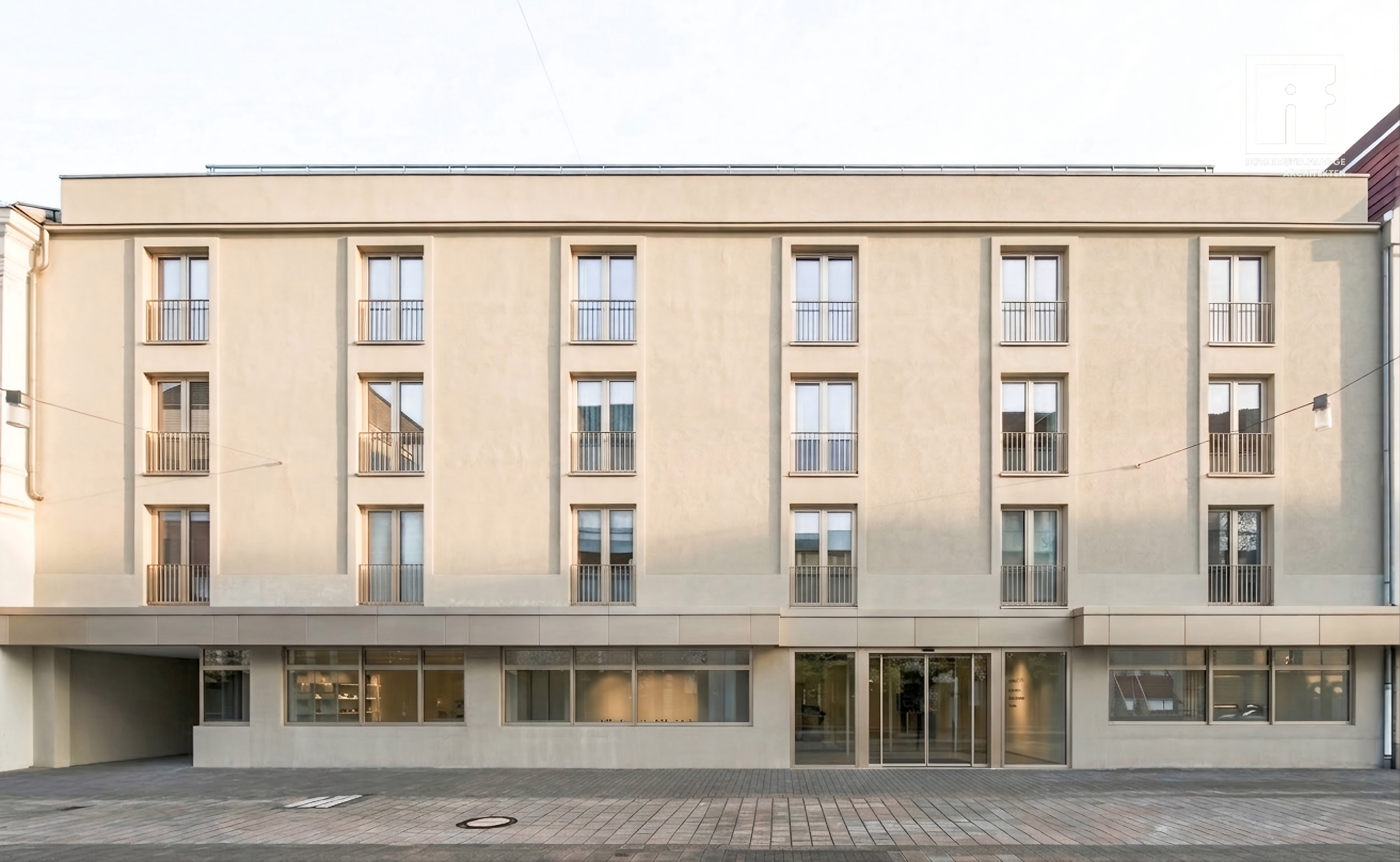 ndere putzfassade in wei leicht creme stelle alles fensterglas realtisch dar und korregiere texturfehler entferne logo in der ecke oben rechts