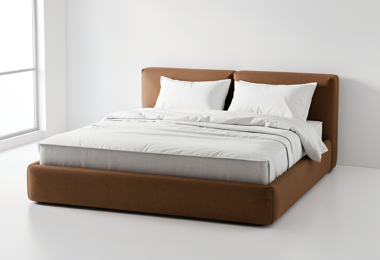 modern contemporary public library inspired by sculptural minimalist architecture keep original massing proportions keep glazing like in original and one dominant facade material warm light concrete or dark red colored fiber cement panels secondary material natural vertical wood cladding in dark brown tone subtle not contrasting do not add doors on facade emphasize strong horizontal cantilever create sculptural recessed ground floor with shadow effect simplify facade composition large calm surfaces minimal fragmentation windows should be large horizontal openings with dark slim frames architecture should feel monolithic calm confident like a cultural pavilion scandinavian minimalism clean lines soft evening sunlight warm interior glow surroundings natural grass terrain few trees minimal hardscape cinematic architectural photography