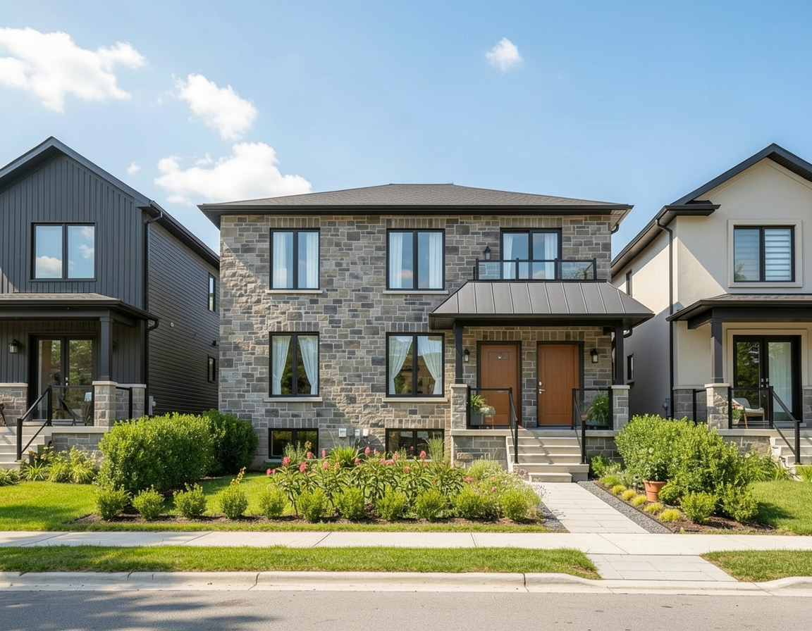 make as photorealistic as possible while keeping textures the same as selection professional landscaping in columbus oh with good lighting match materials to plan and remove any text siding ebe8db trim ebe8db fascia and soffit white windows black front door white 6 lite roof moire black certainteed square posts 683c22 11am