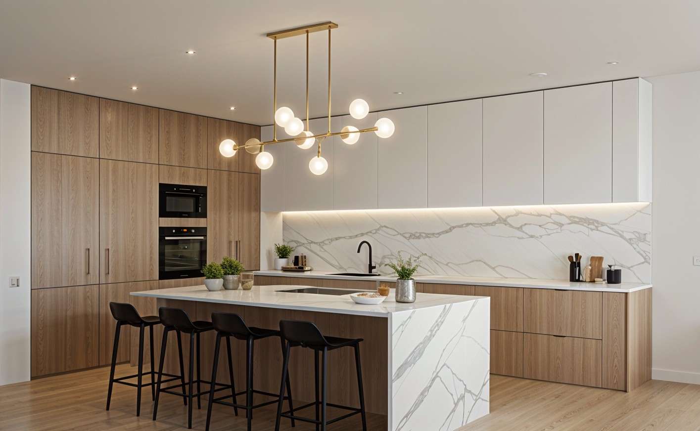 please put another pendant above kitchen island maybe black 3 pendants midium size