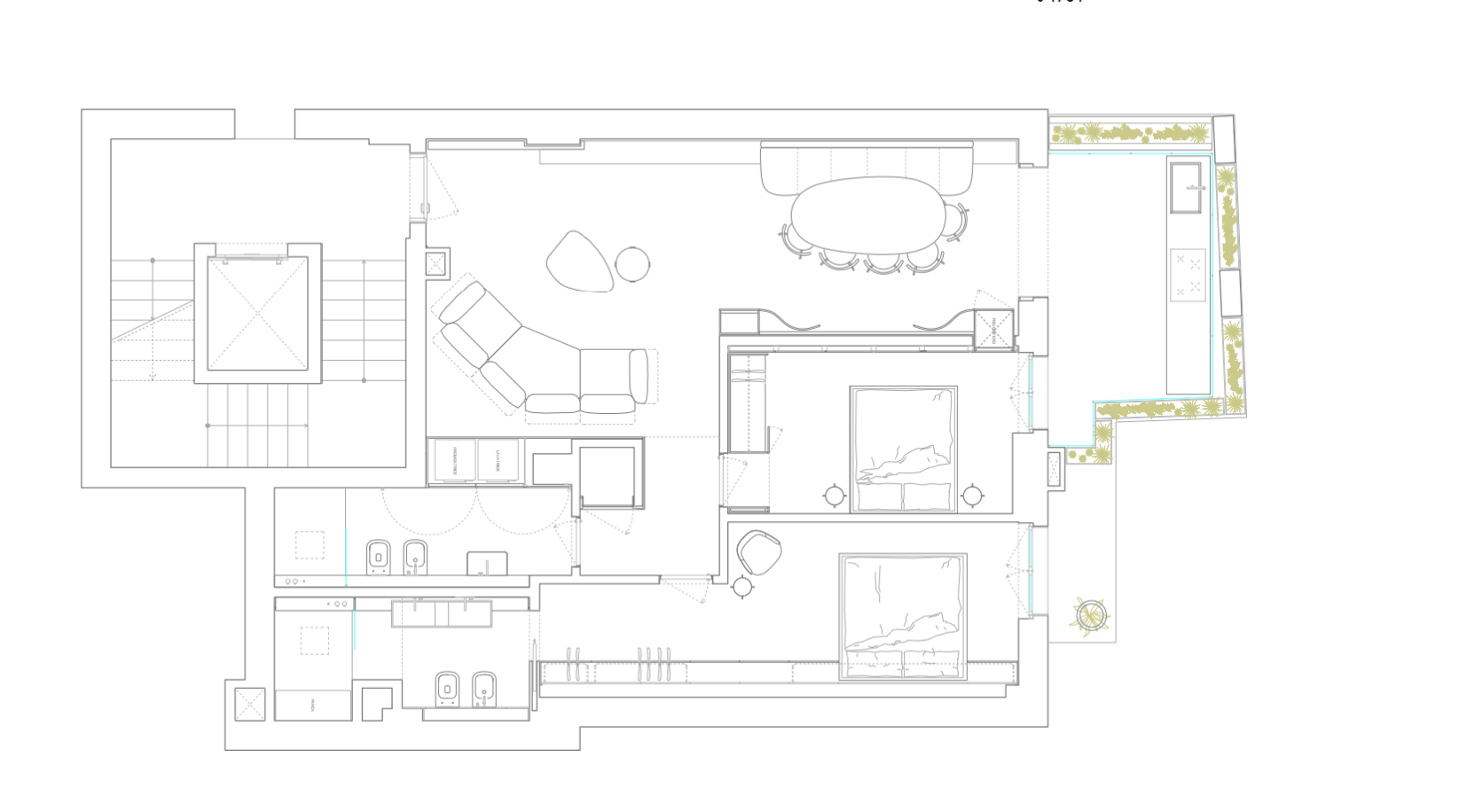 convert this floor plan into a realistic isometric 3d view of a full house show the space from an elevated angle with furniture walls and details visible use the same furniture as shows on the plan do not change the orientation of the floorplan