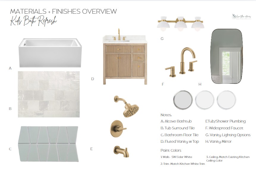 you said use the selections from the mood board to generate a 3d render of a full guest bathroom the white square tile should run offset on the walls around the tub the light green mosaic is the bathroom floor the walls should be a very light greight color