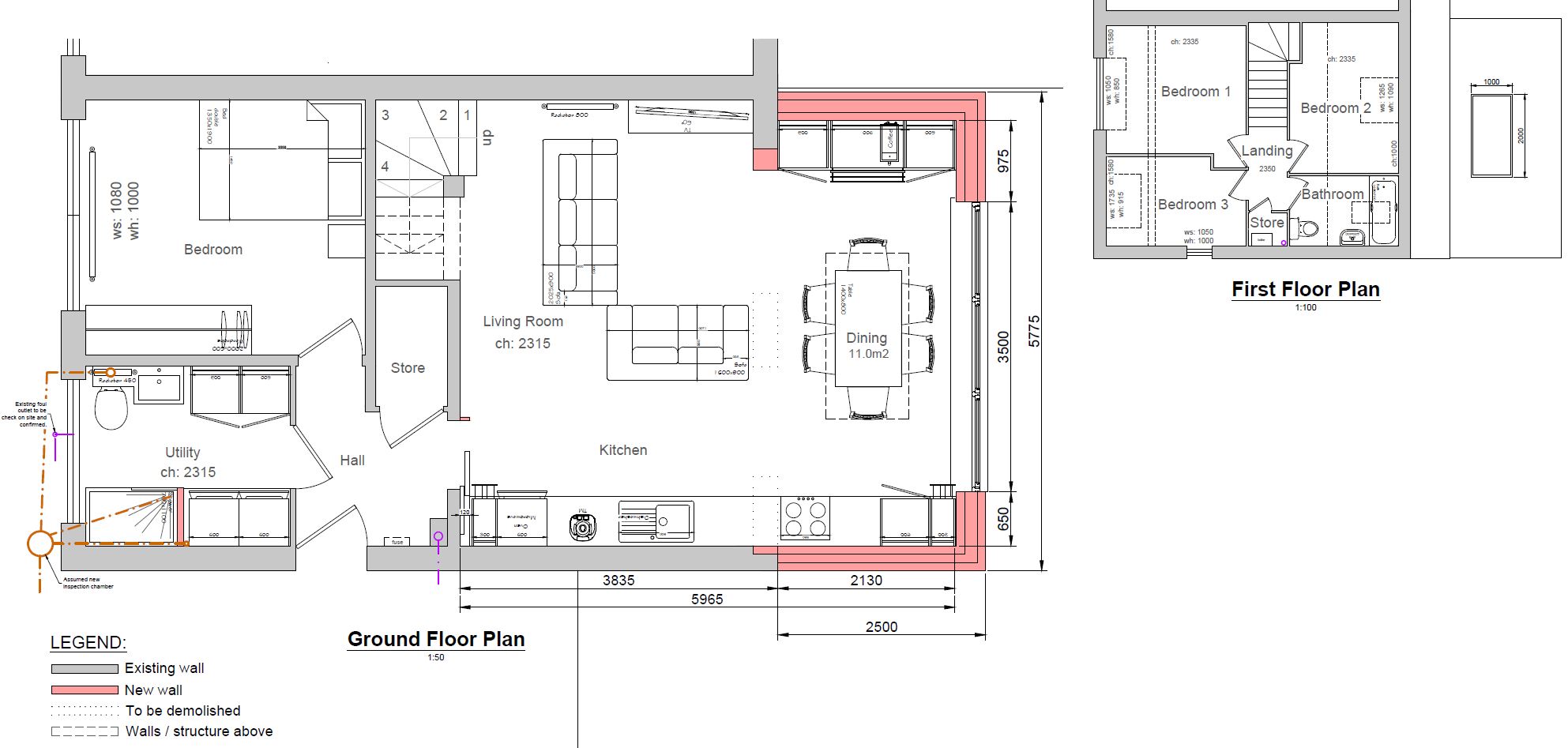 convert this floor plan into a modern isometric 3d view of a full house show the space from an elevated angle with furniture walls and details visible create an isometric architectural view from the provided autocad drawing the drawing contains two plans ground floor plan scale 1 50 and first floor plan scale 1 100 important requirements do not change the layout in any way all walls rooms furniture doors and window openings must remain exactly as shown in the original plan preserve the exact position dimensions and arrangement of all elements strictly convert the drawing to an isometric realistic modern projection only do not redesign infer or change position of any elements use the same furniture as shows on the plan do not change the orientation of the floorplan