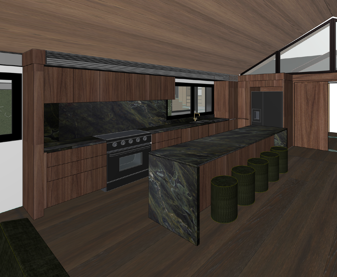 kitchen to have no handles make oven and fridge black air conditioning lineal grill to be black