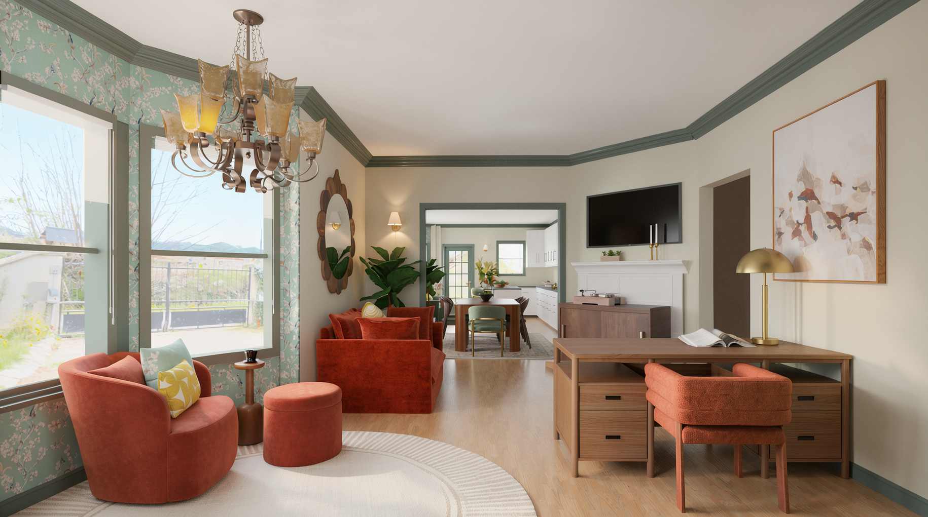 make the red couch rust color to match the other furniture