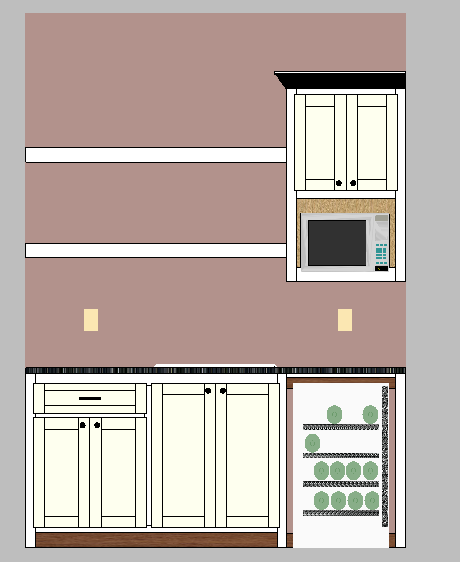 a beautiful cozy kitchen interior with a rustic charm the cabinetry is crafted from rich warm walnut wood giving off a deep inviting brown tone the countertop is a sleek black granite contrasting elegantly with the wood the wall is painted in a soft muted mauve adding subtle warmth to the space the cabinets have transparent glass panels revealing hints of simple dishware inside a modern microwave with a silver and black finish sits neatly built in adding a touch of modernity the atmosphere is cozy and inviting with soft ambient lighting creating gentle shadows and highlights enhancing the kitchen s elegant design