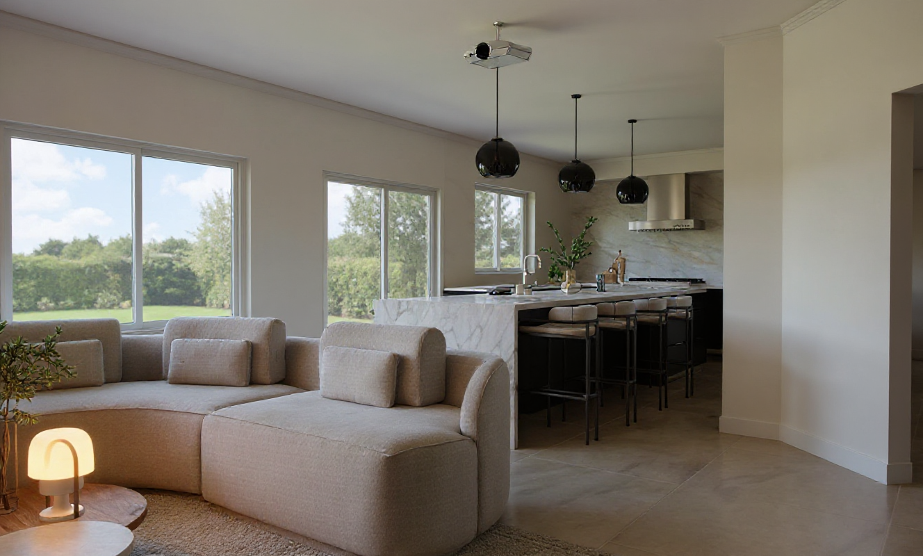 add decorations add leds add stools at backside of island