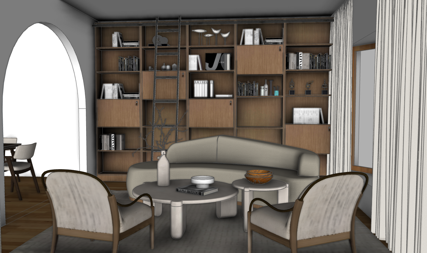 this image into a photorealistic image with lots of natural light casting through the window