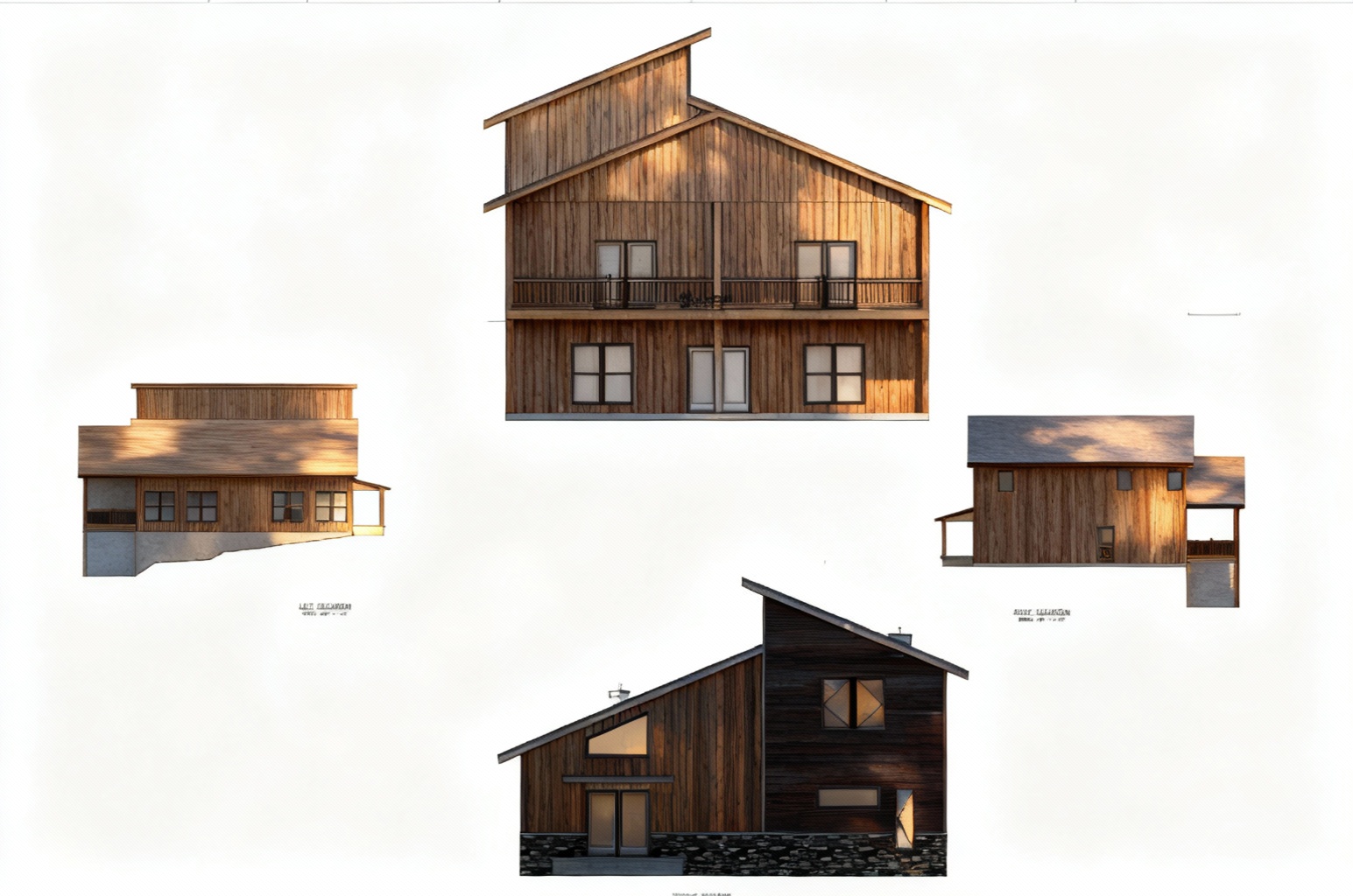 create a rendering of this residential home with a retaining wall firepit in the backyard transitioning to a wooded setting