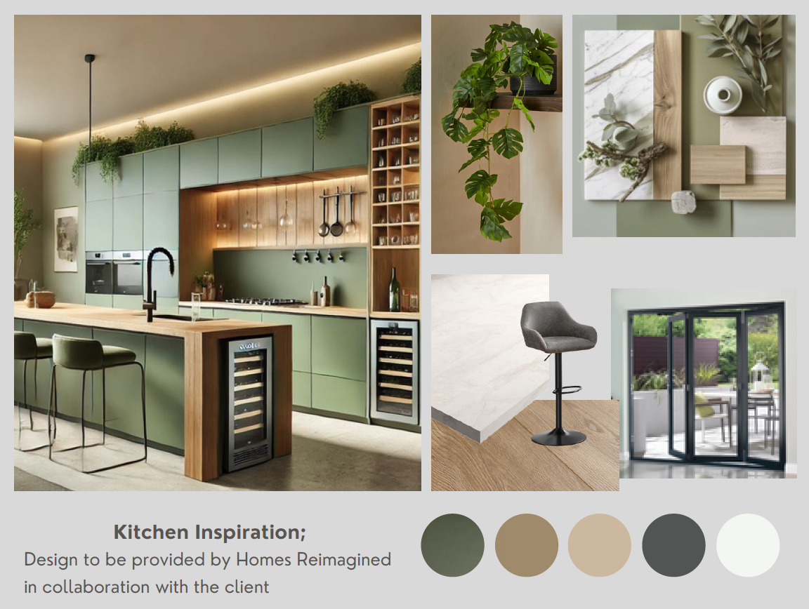 modernist interior shot can you take this moodboard and turn it into a render of a kitchen architecture