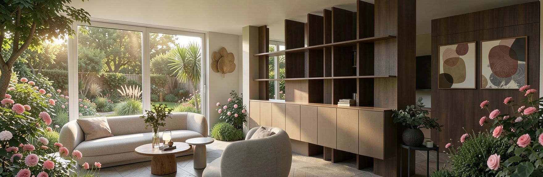 improve this image into an ultra realistic professional architectural photograph correct the perspective straight lines no distortion natural spatial effect slightly optimize the camera position for a higher quality professional image composition maximize image quality razor sharp details realistic textures fabric wood glass physically accurate light and shadow natural reflections in the windows optimize exposure and dynamics hdr look but natural enhance contrast and color balance as seen in high end interior design magazines important do not change the room furniture or arrangement only improve perspective lighting and quality photorealistic 8k ultra high detail professional real estate photography style make it a sunny day