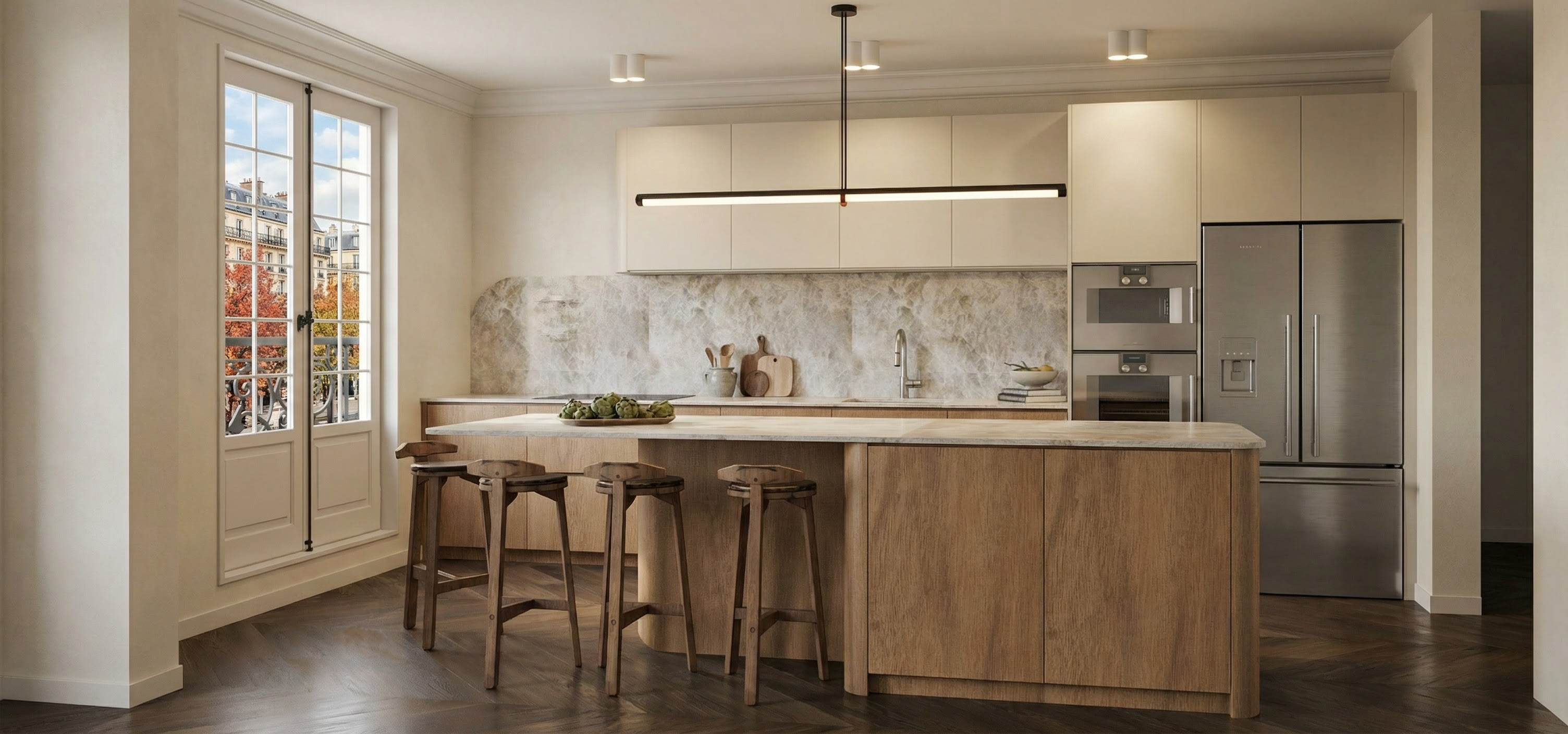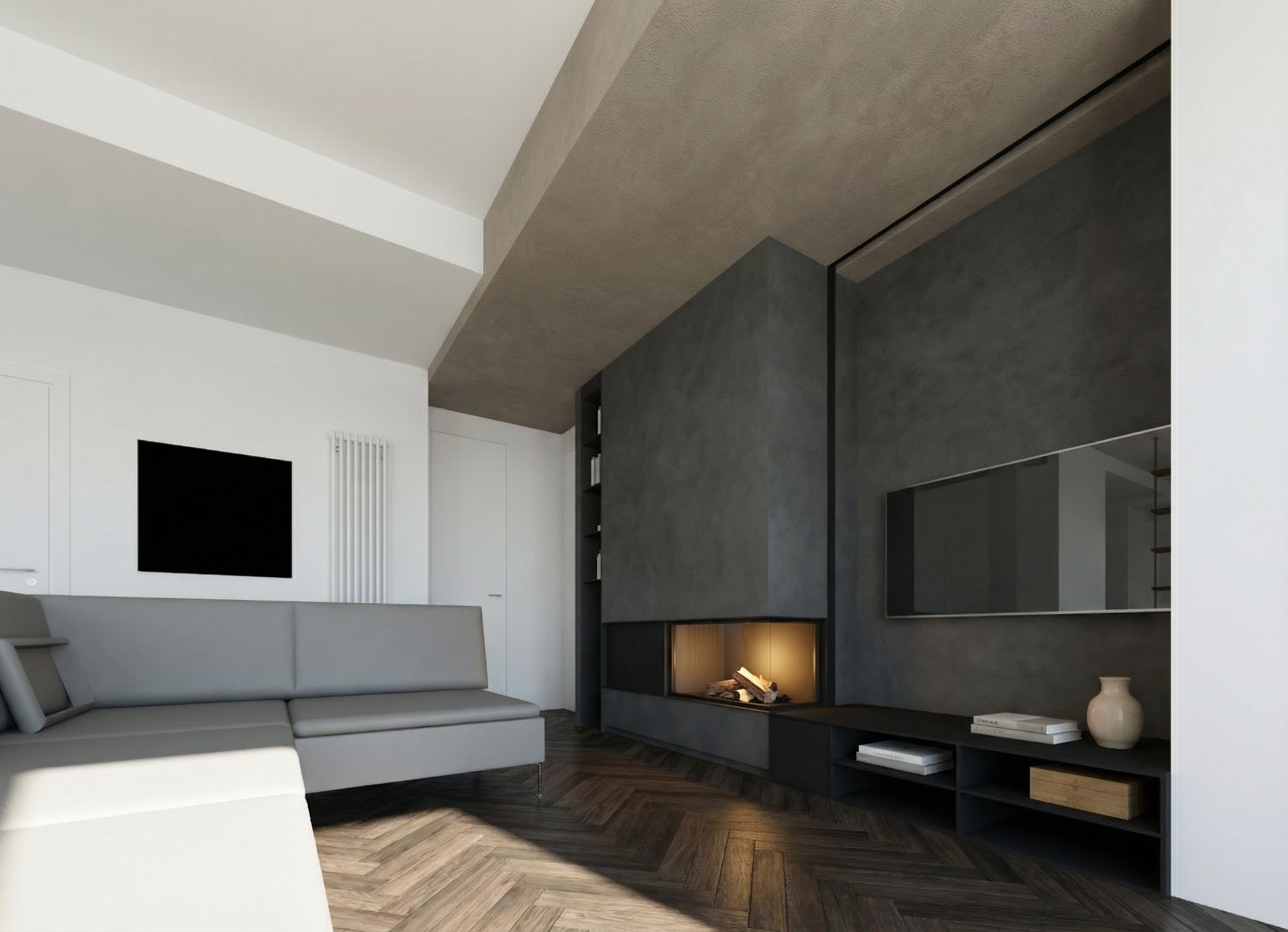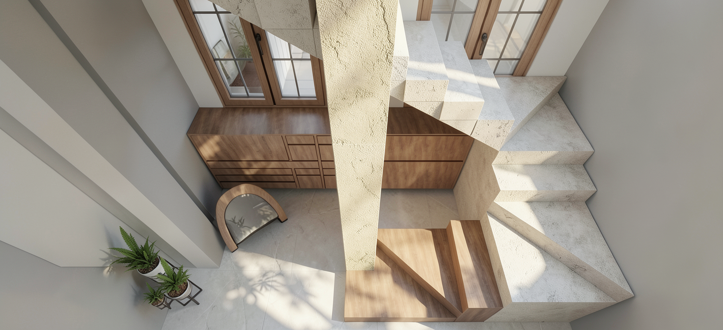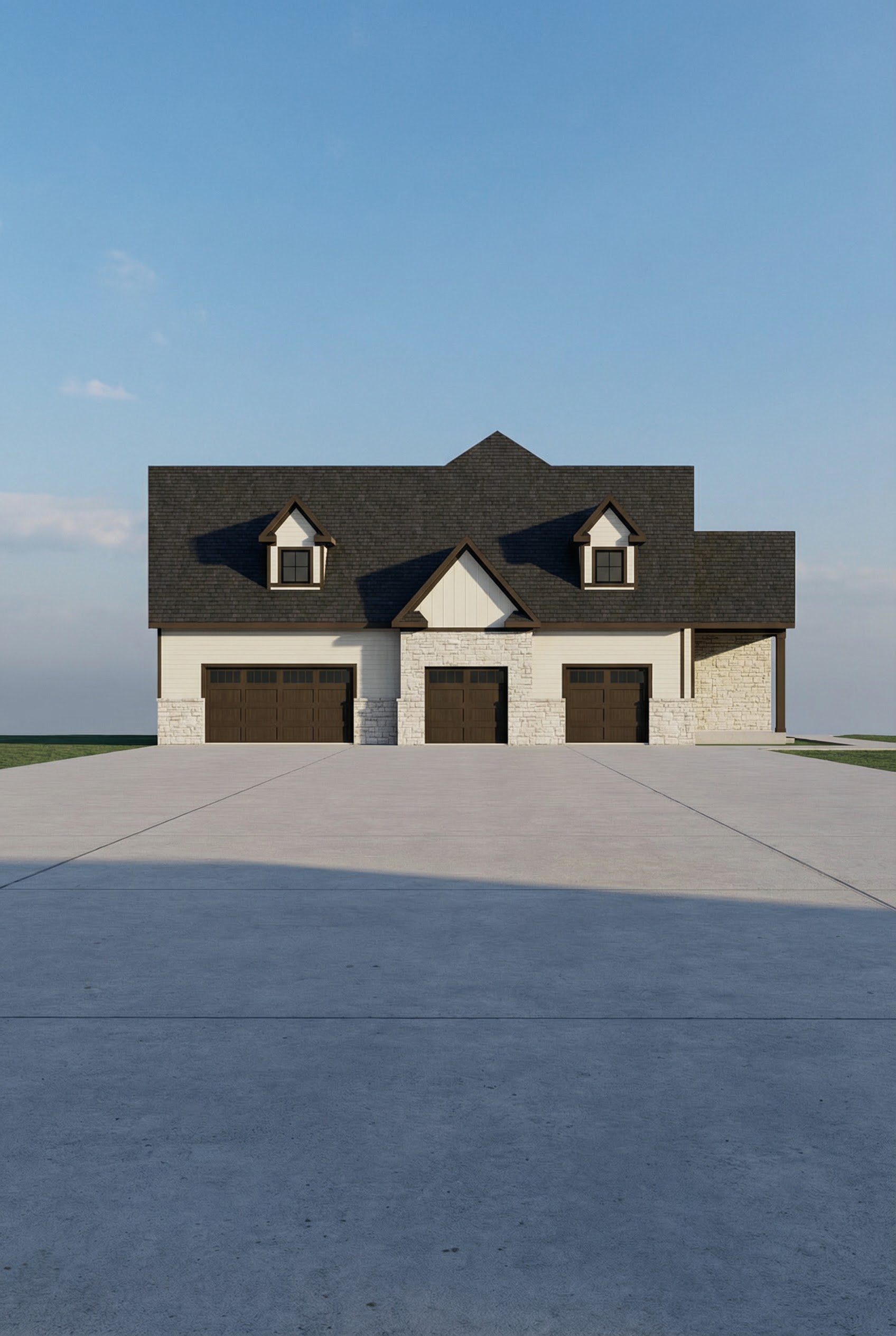 partly cloudy sky some deciduous trees in background gray siding white windows white trim